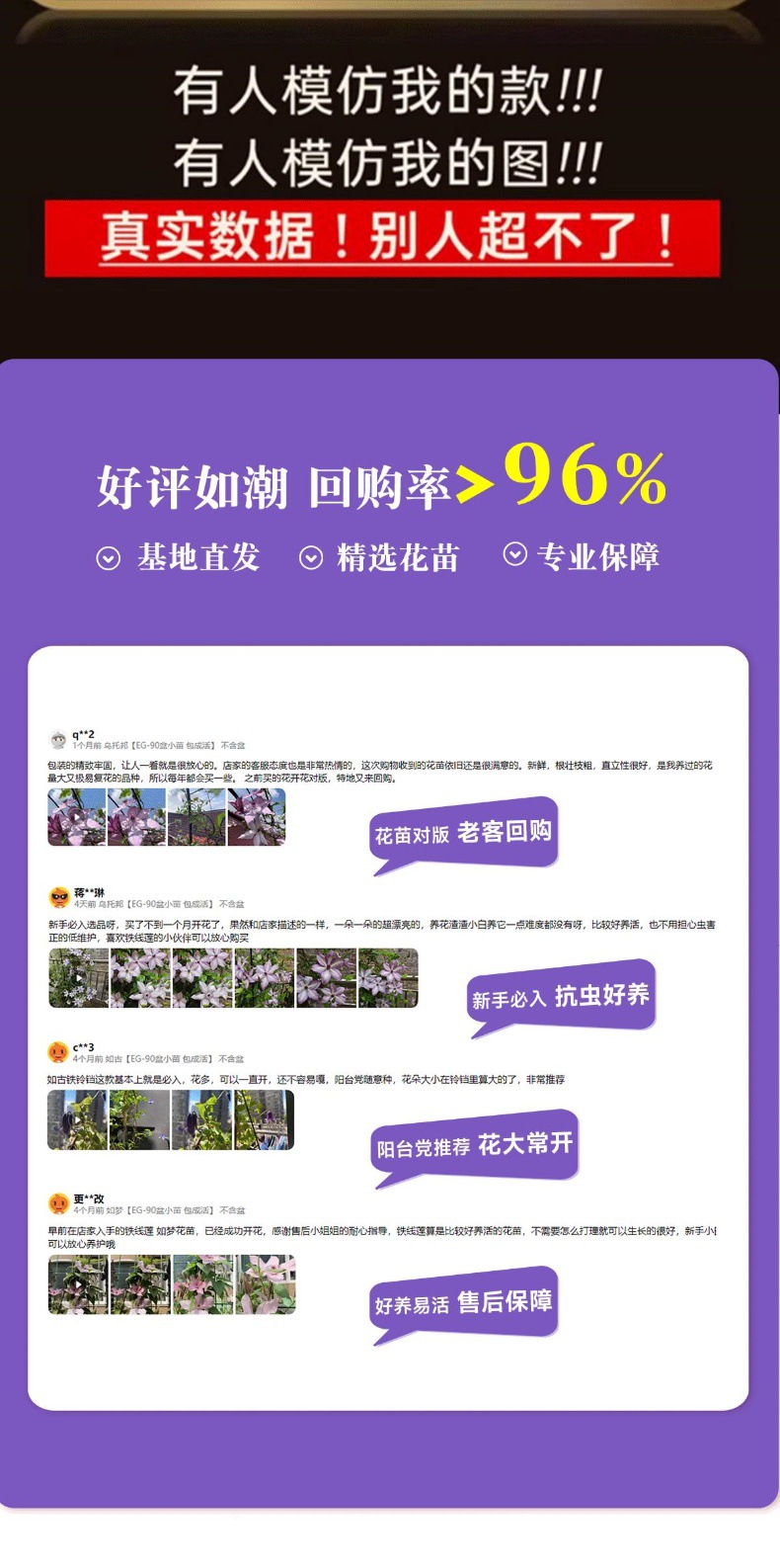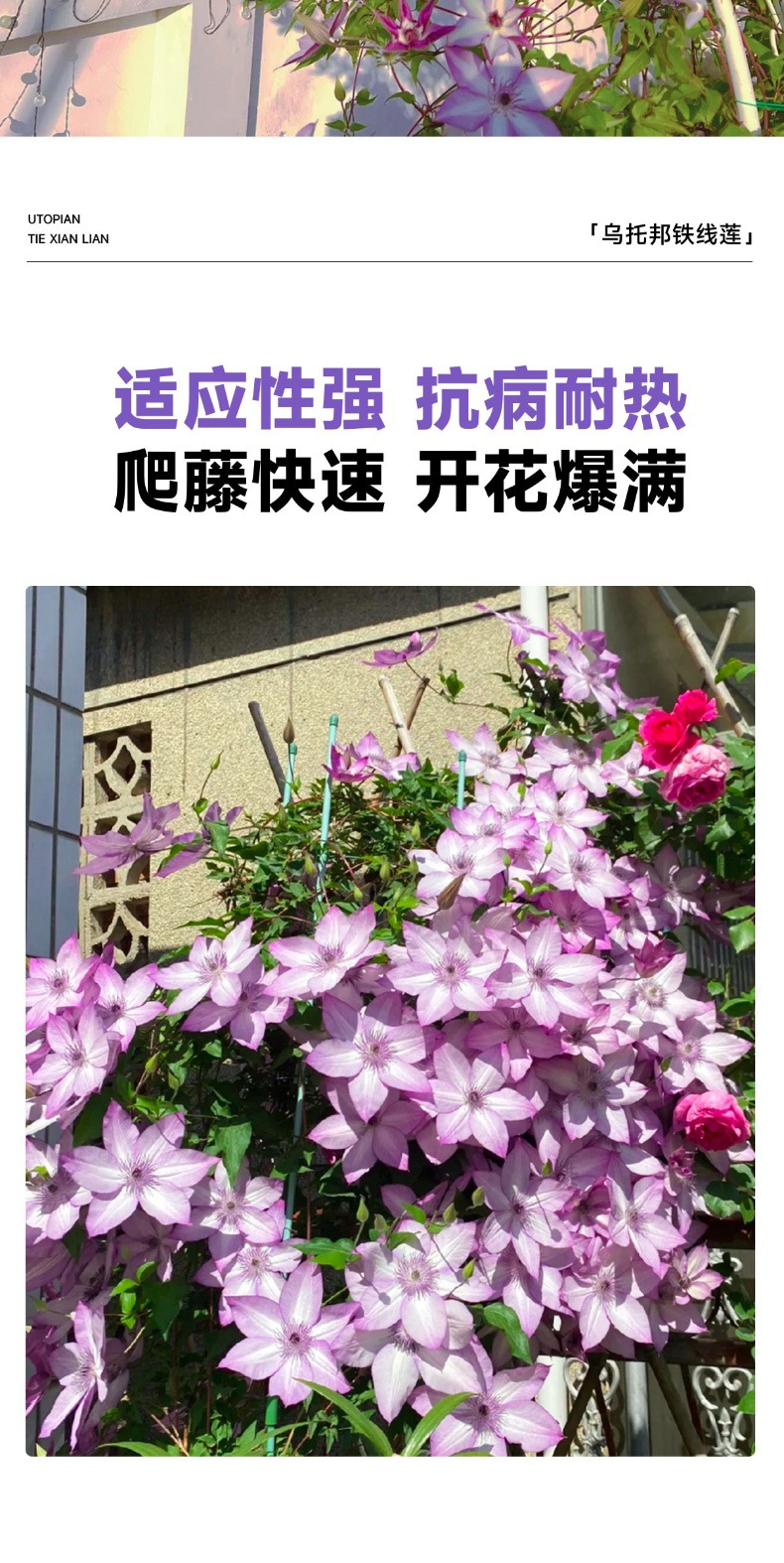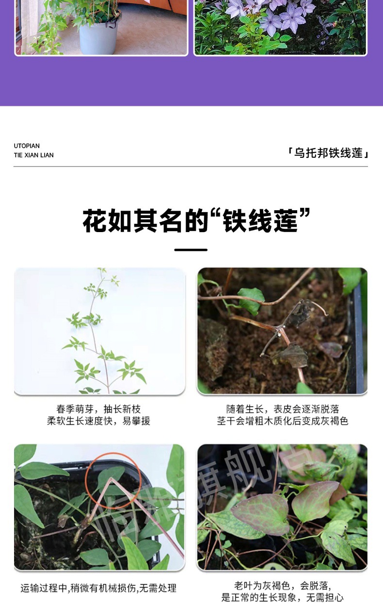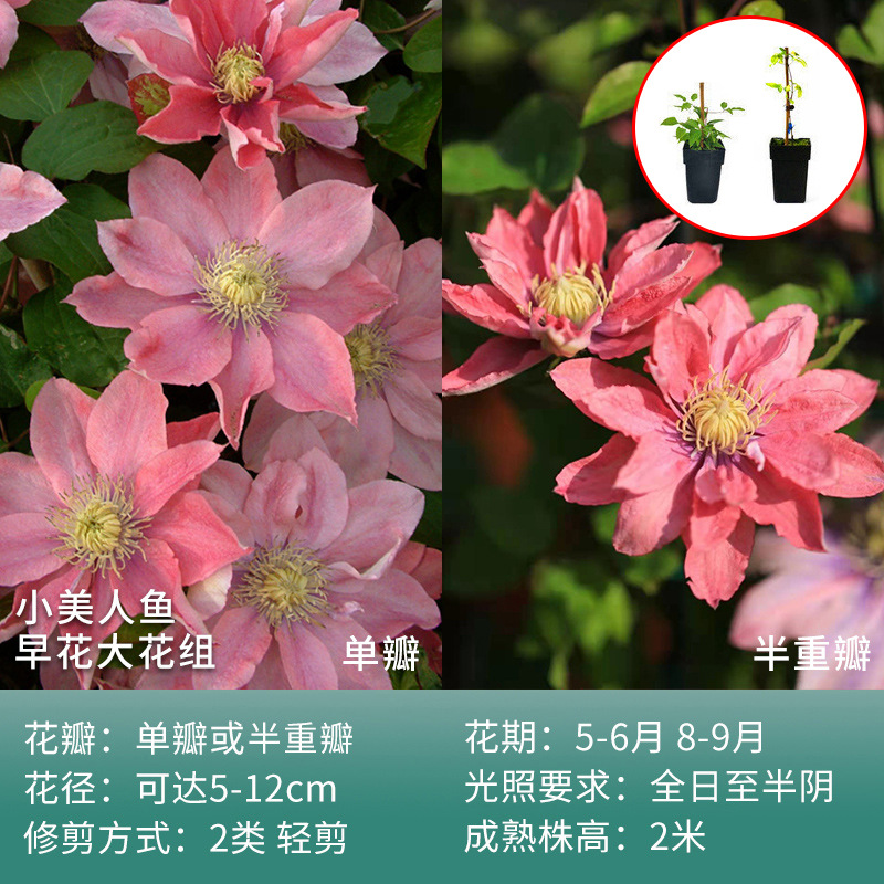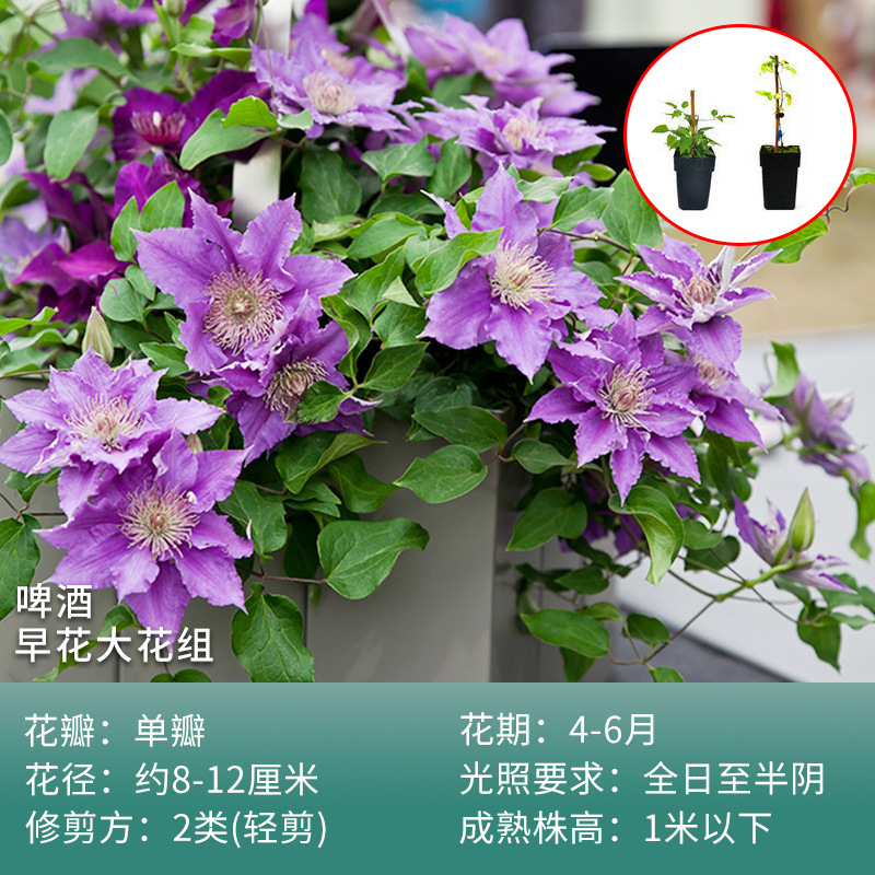유토피아 클레 마티스 클레 마티스 더블 모종 3 가지 유형의 등반 식물 실내 꽃 꽃 녹색 식물 화분스토어 가기