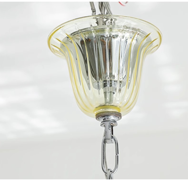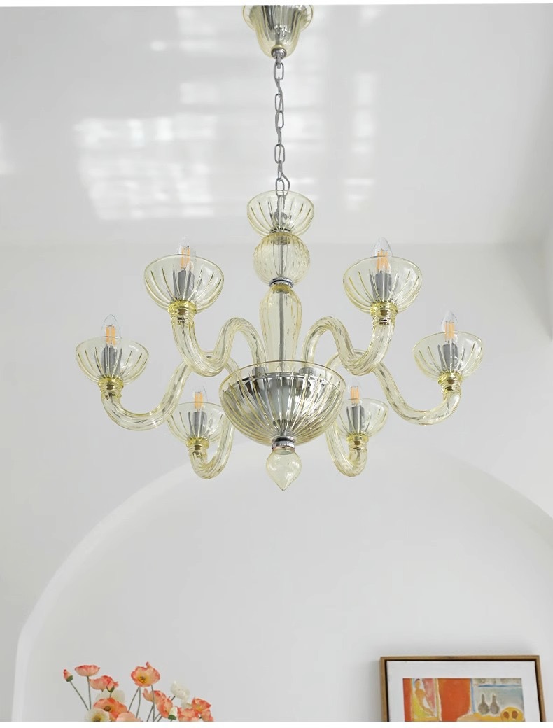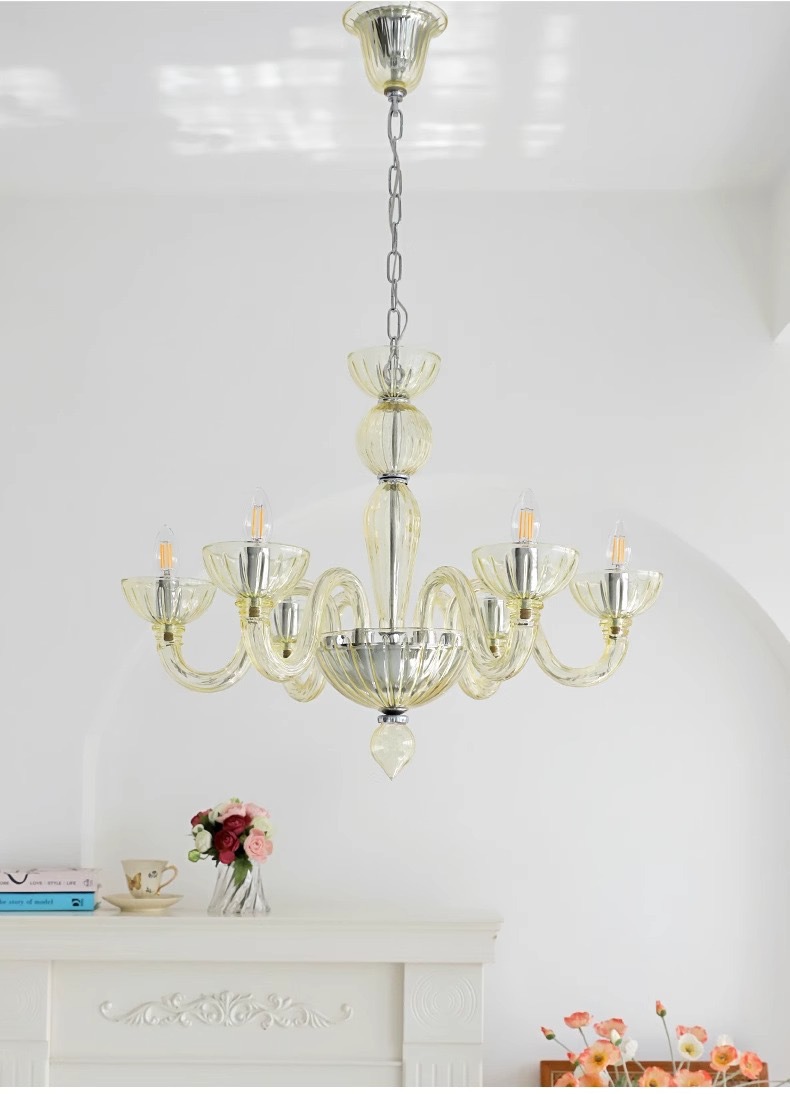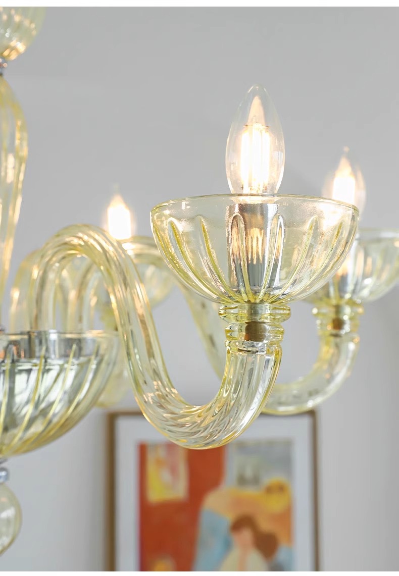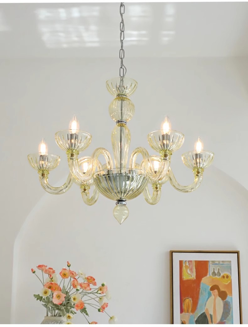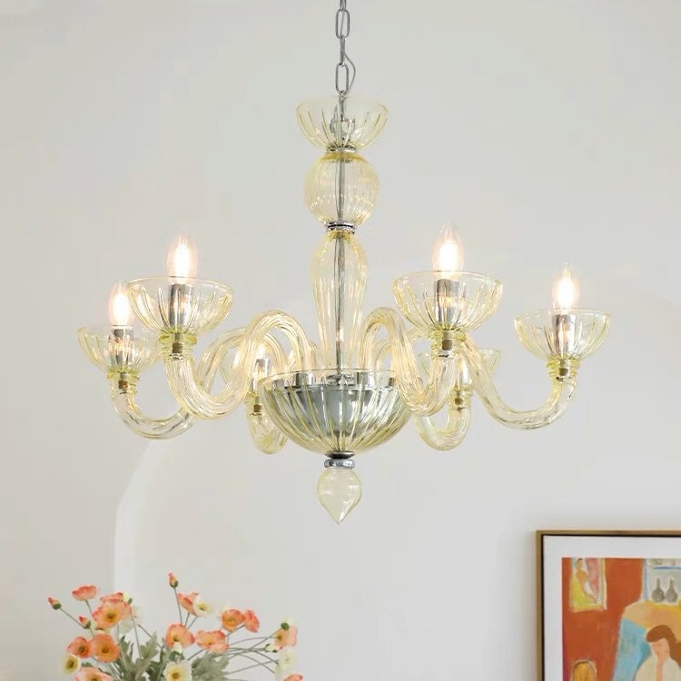 프랑스 빈티지 샹들리에 샴페인 컬러 유리 캔들 램프 미국식 가벼운 럭셔리 거실 메인 램프 창조적 인 침실 다이닝 룸 램프