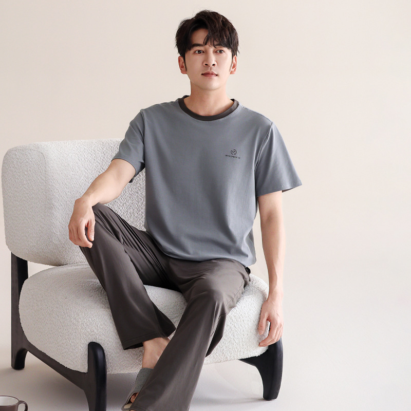 모달 남자 잠옷 남자 여름 반팔 바지 2024 새로운 간단한 남자 외부 착용 홈 의류 세트