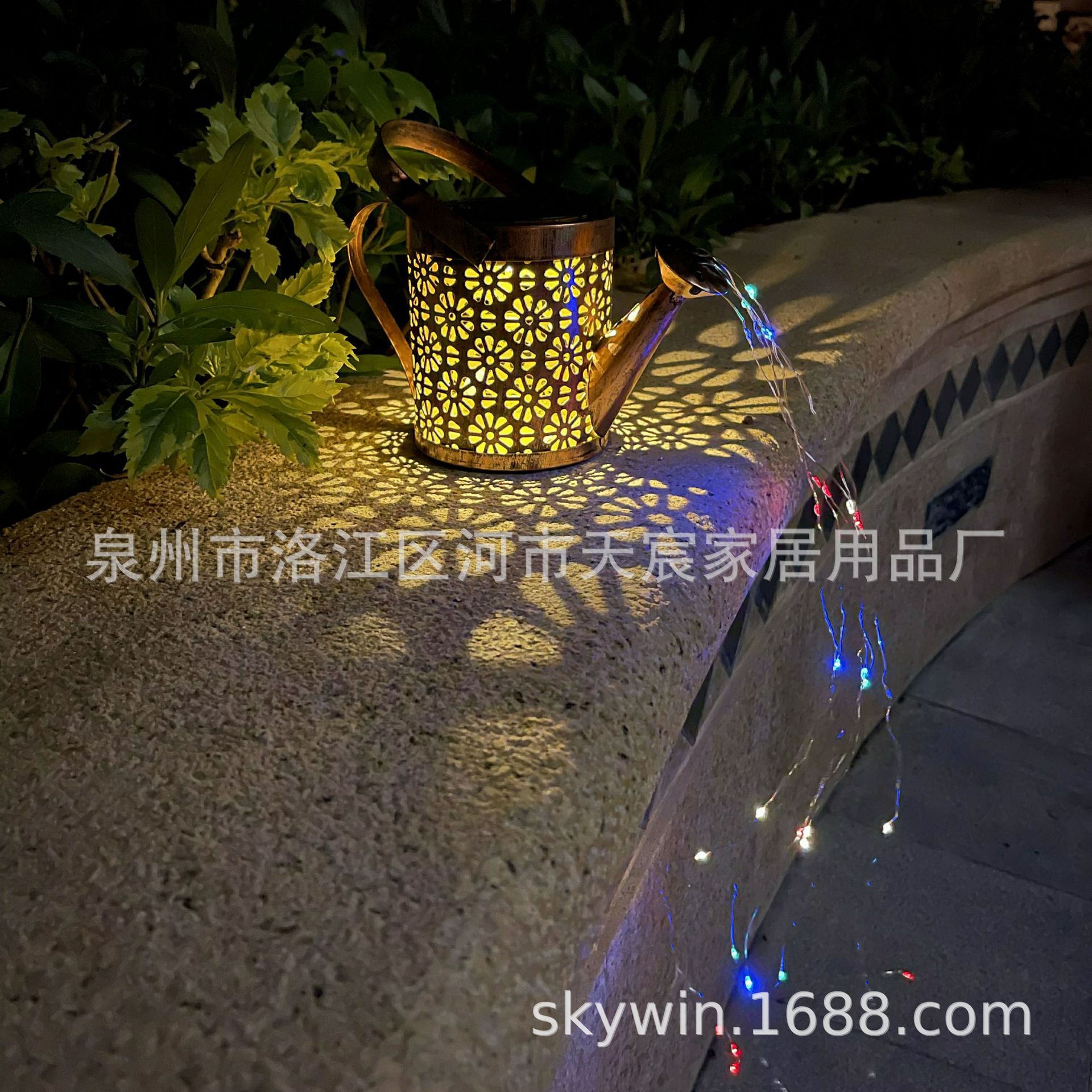 철 국화 주전자 중간 태양 흐르는 물 랜턴 정원 랜턴 스몰 사이즈 LED 태양 빛