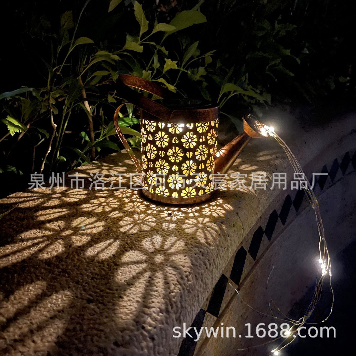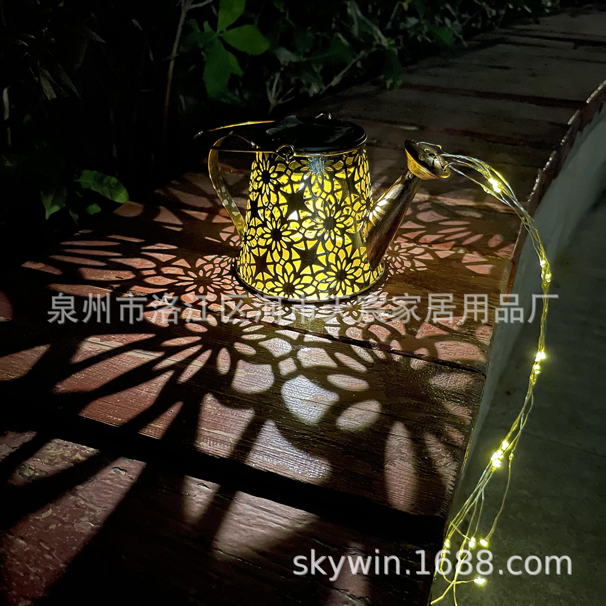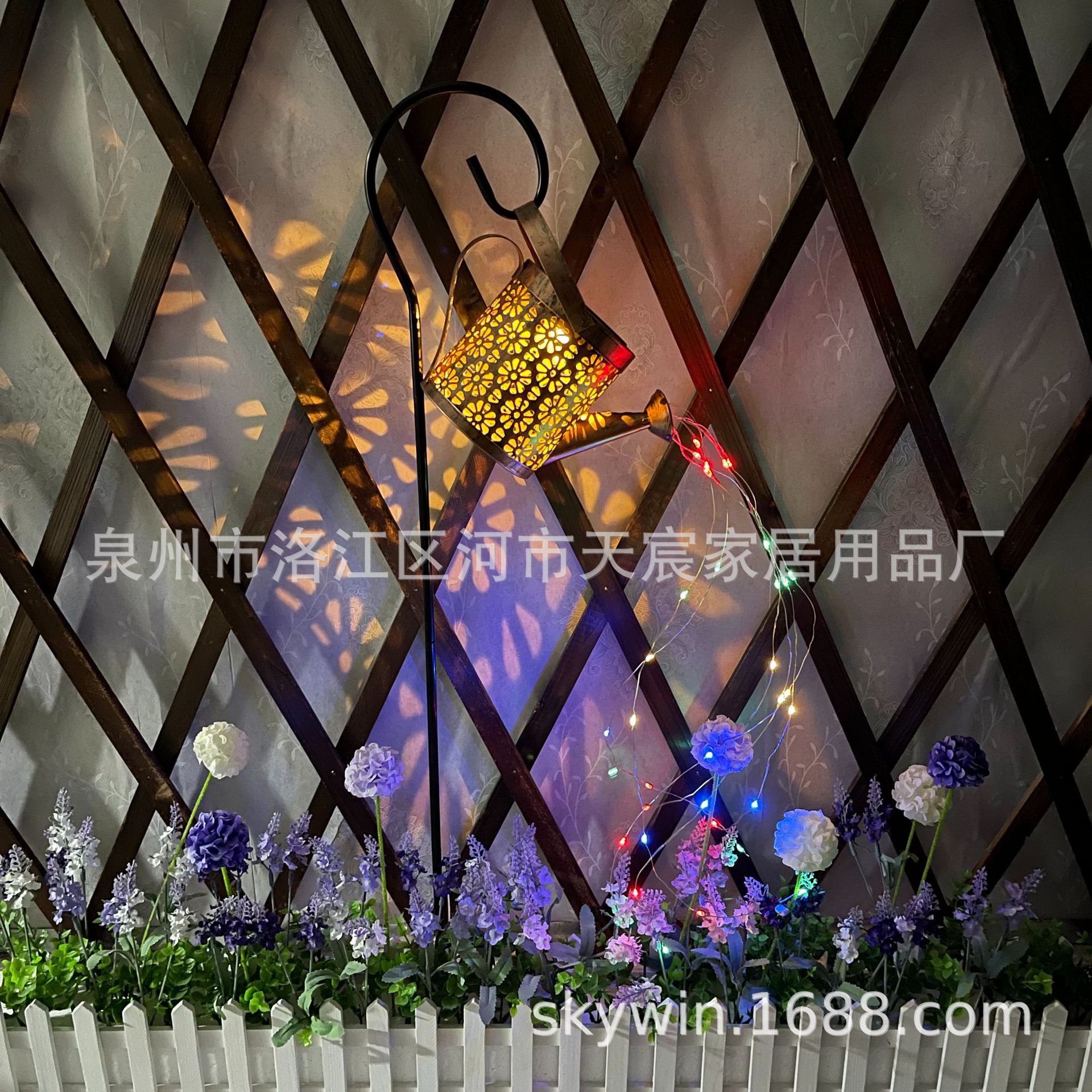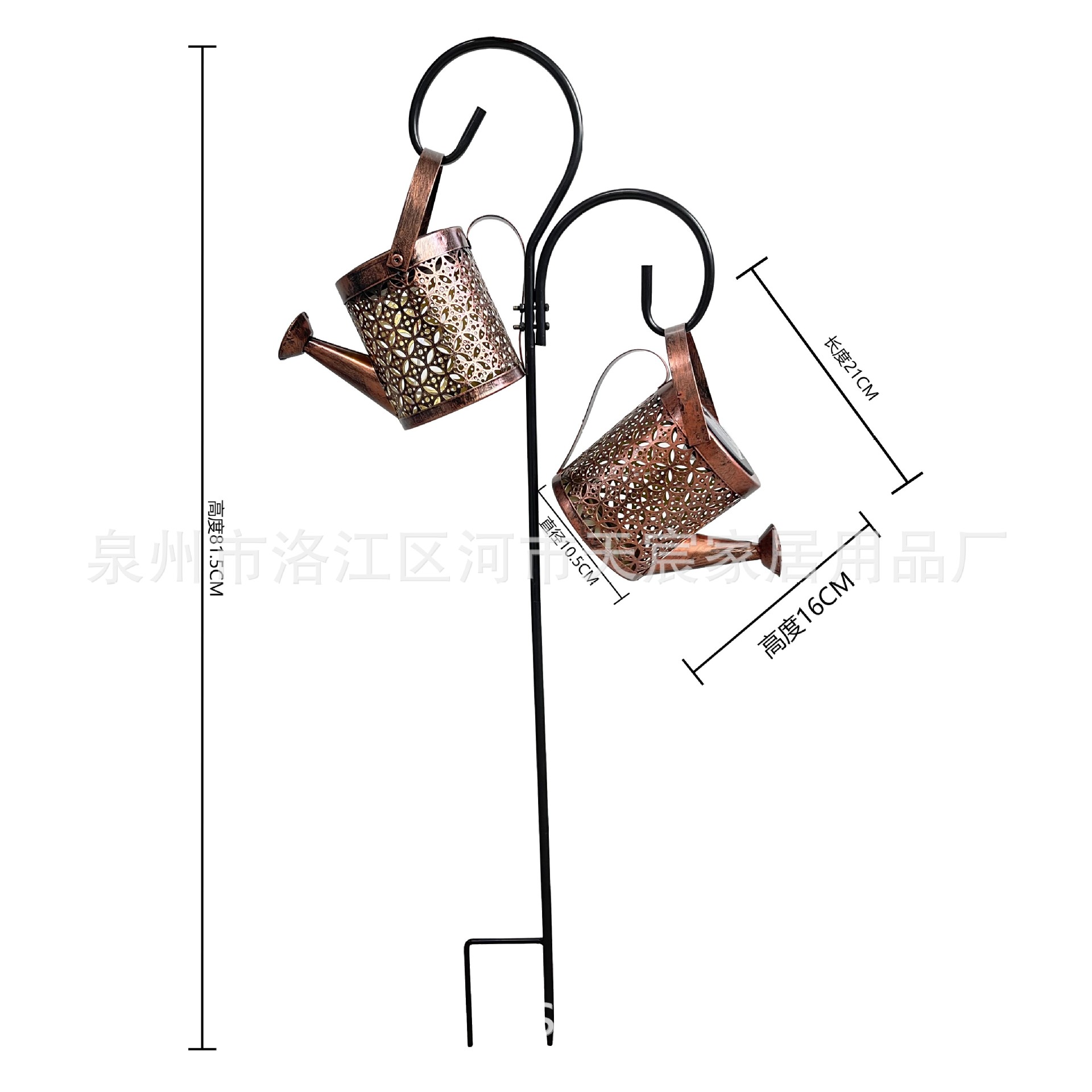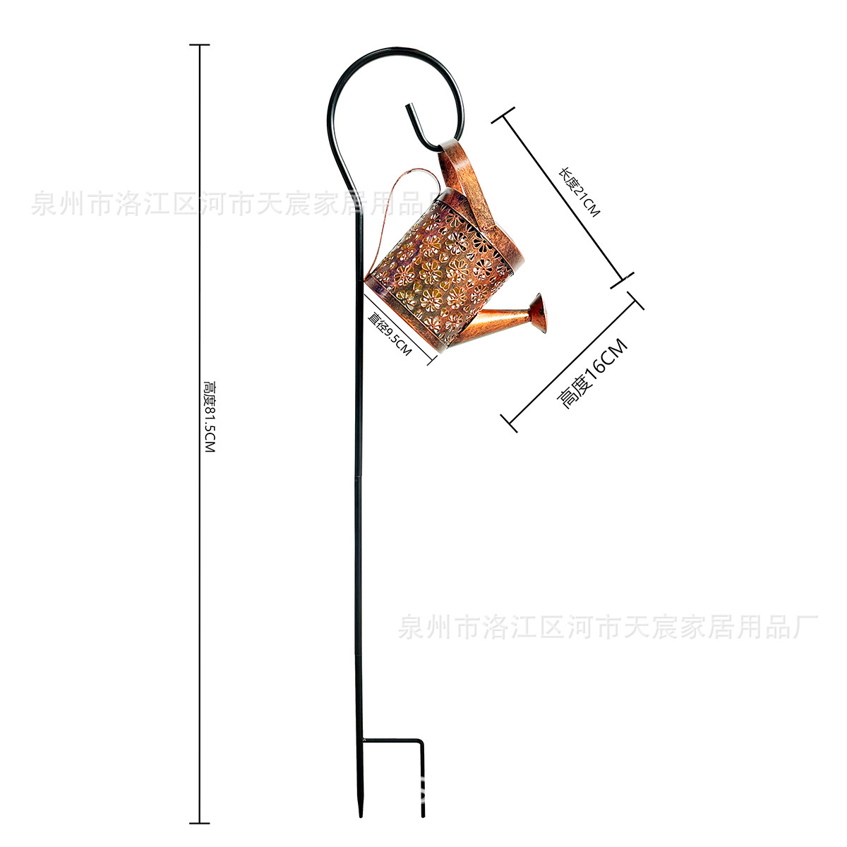 花园摆饰金属水壶酒水闪灯配牧羊钩插件 iron solar light kettle