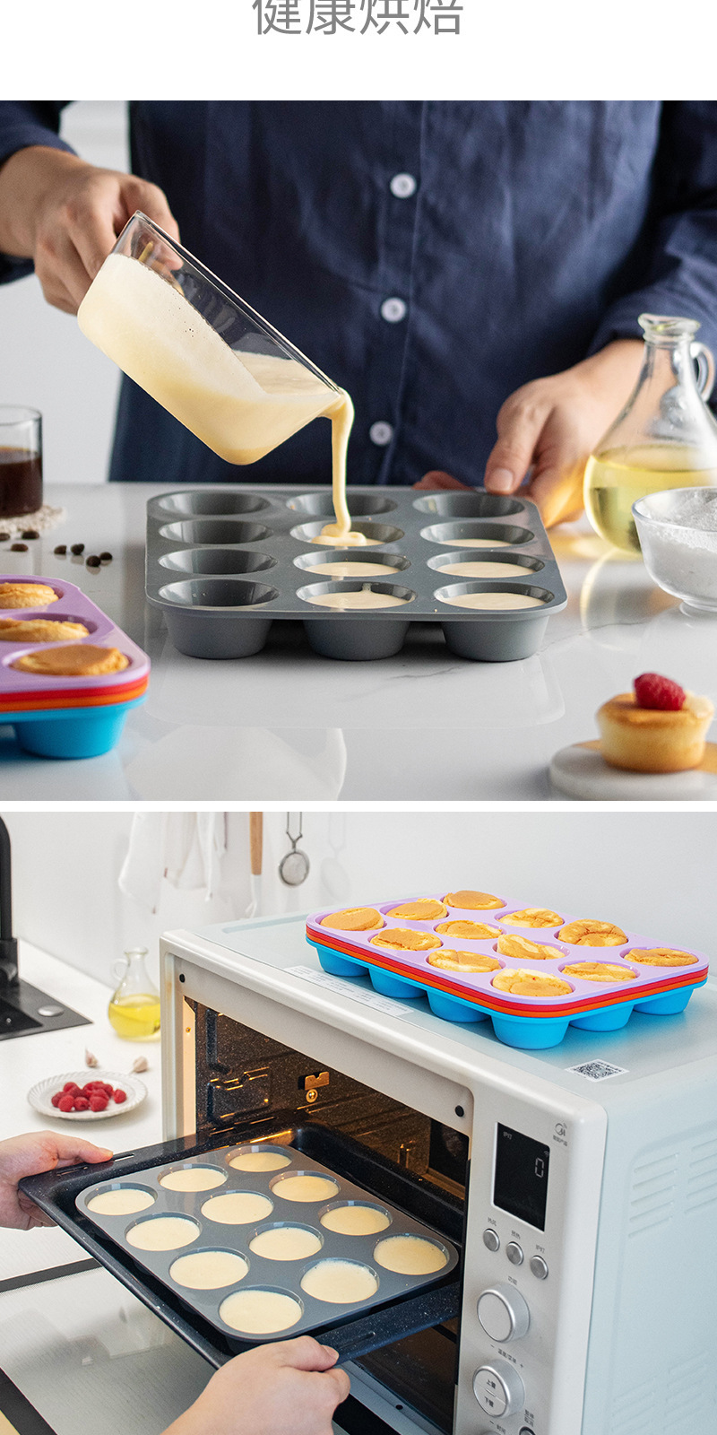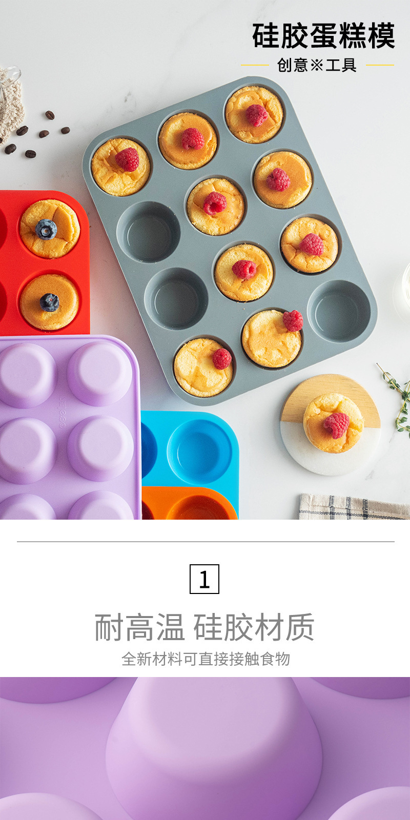 실리콘 고온 케이크 라운드 베이킹 팬 12 형 컵 케이크 베이킹 오븐 케이크 금형
