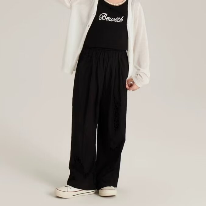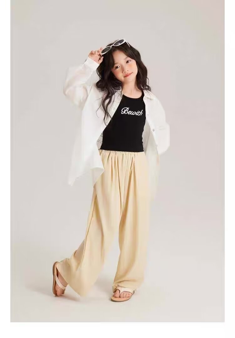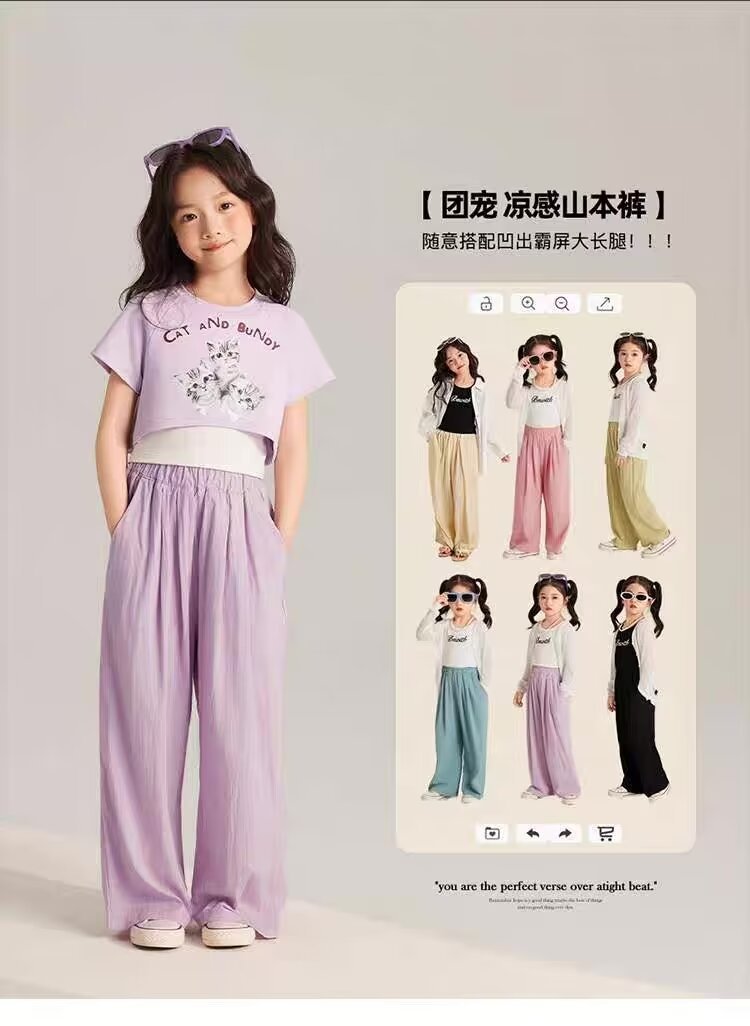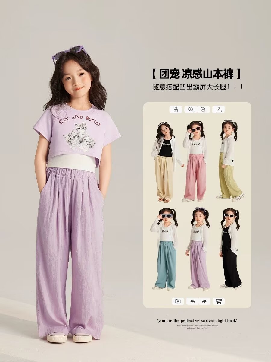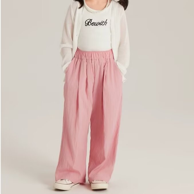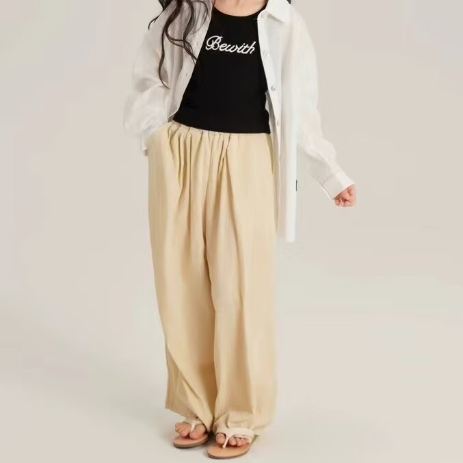 여자 캐주얼 바지 2024 새로운 넓은 다리 바지 서양식 야마모토 바지 큰 어린이 느슨한 스트레이트 다리 바지 얇은스토어 가기