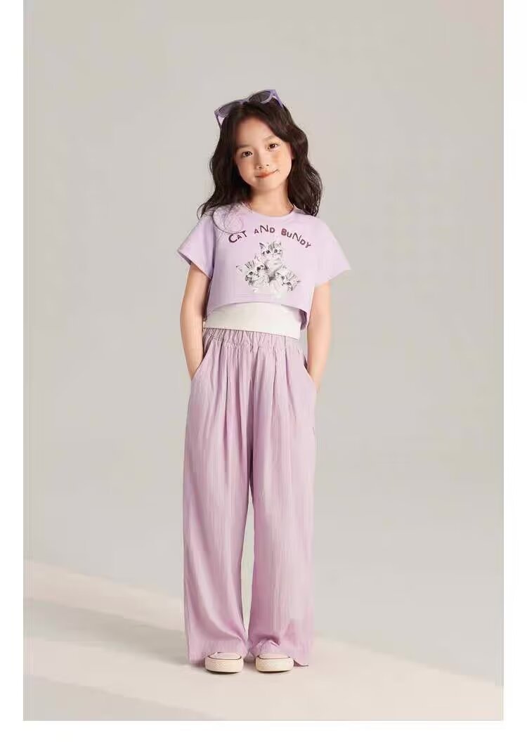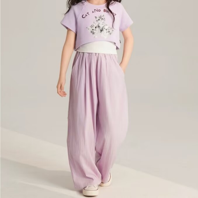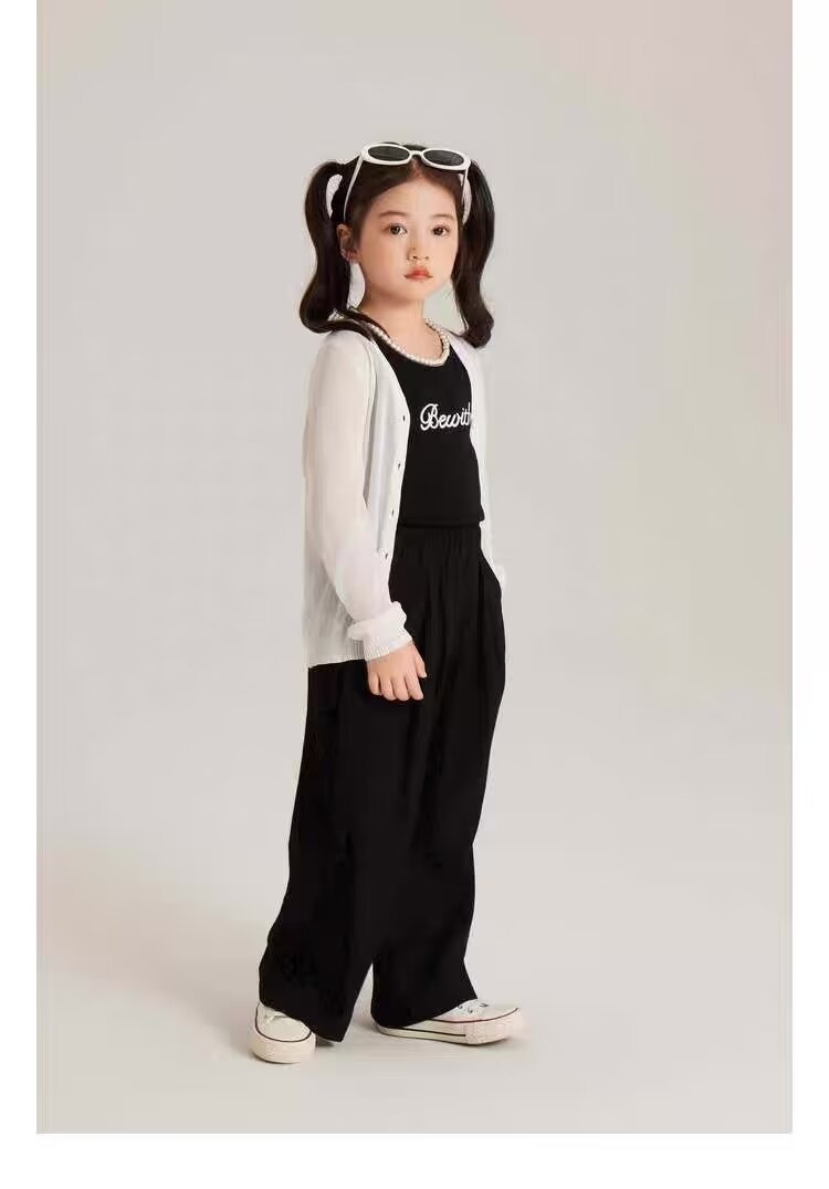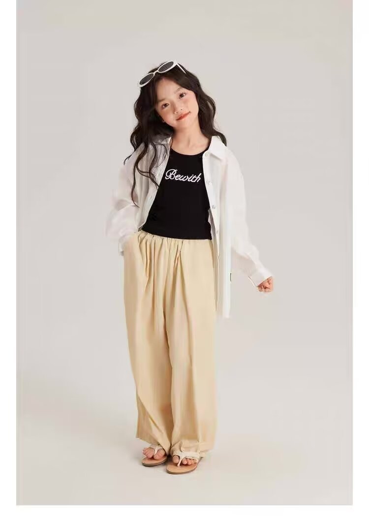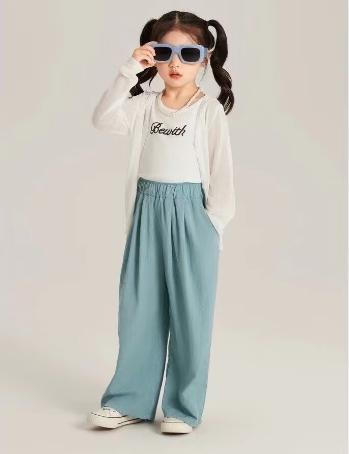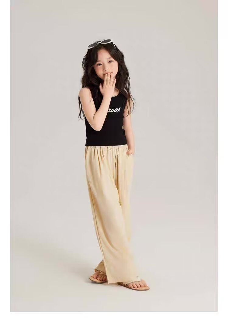 여자 캐주얼 바지 2024 새로운 넓은 다리 바지 서양식 야마모토 바지 큰 어린이 느슨한 스트레이트 다리 바지 얇은스토어 가기