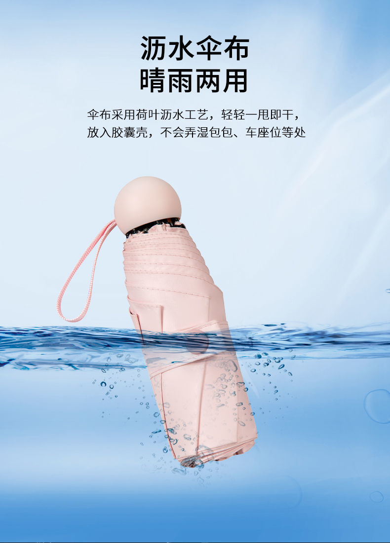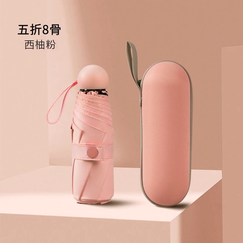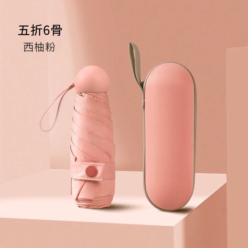 50% 접은 태양 우산 작고 편리한 태양 보호 UV 보호 여성 학생 접히는 맑고 비오는 이중 사용 포켓 캡슐 우산