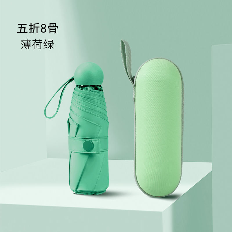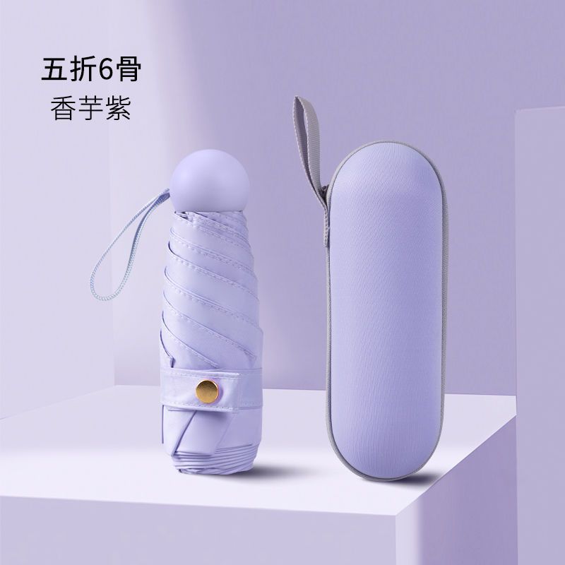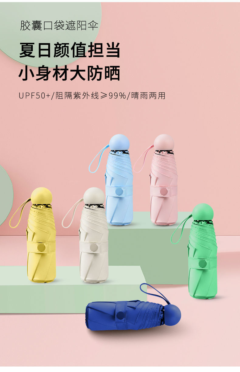 50% 접은 태양 우산 작고 편리한 태양 보호 UV 보호 여성 학생 접히는 맑고 비오는 이중 사용 포켓 캡슐 우산스토어 가기