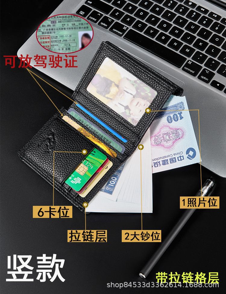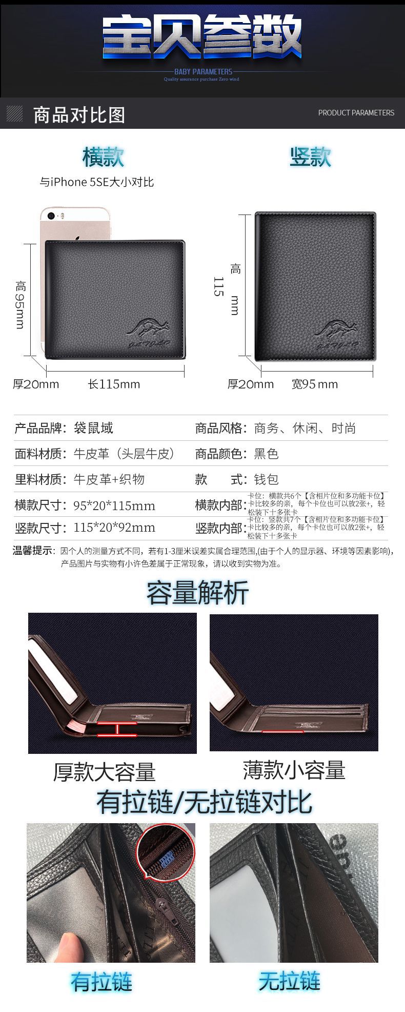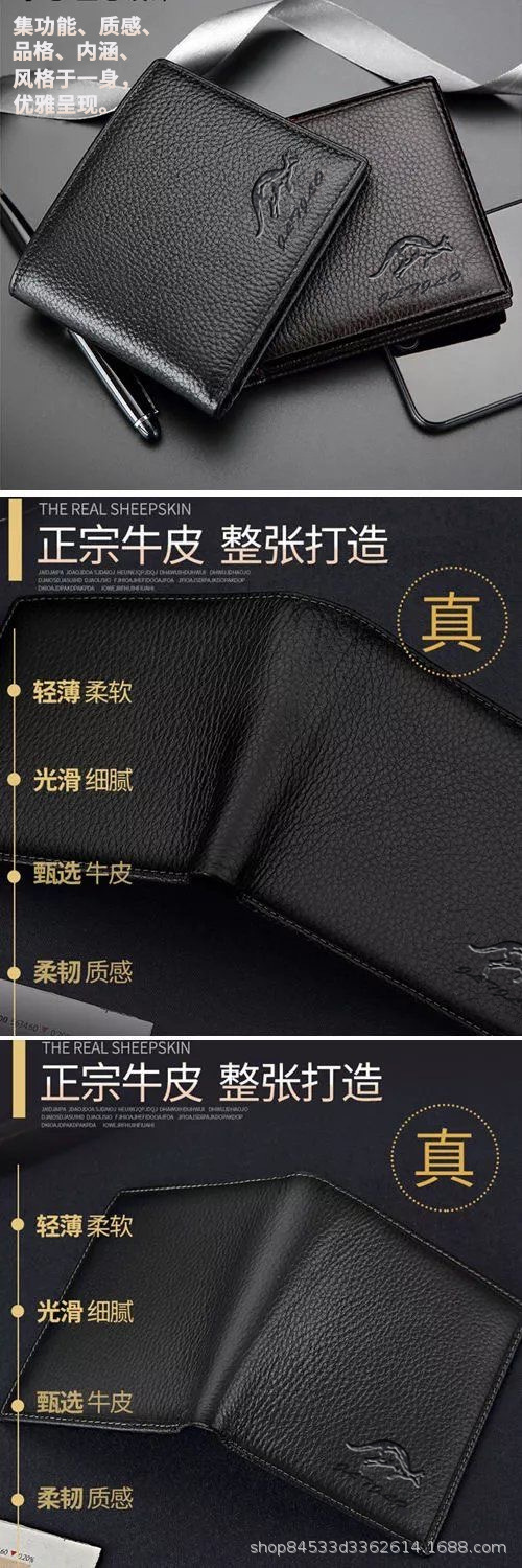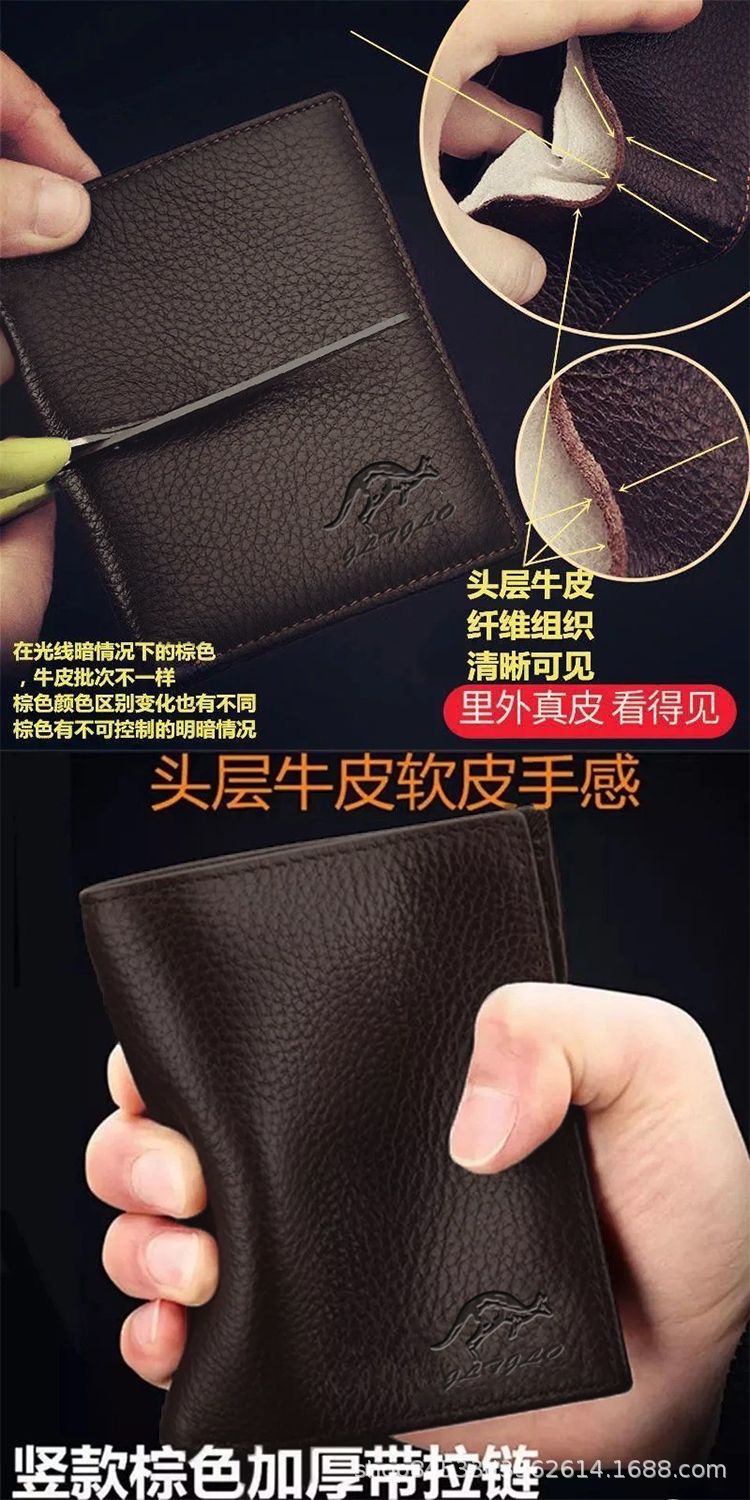 가죽 지갑 Cowhide 지갑 남자의 짧은 캥거루 도메인 Cowhide 지갑 지퍼 드라이버 라이센스 카드 가방 새로운스토어 가기