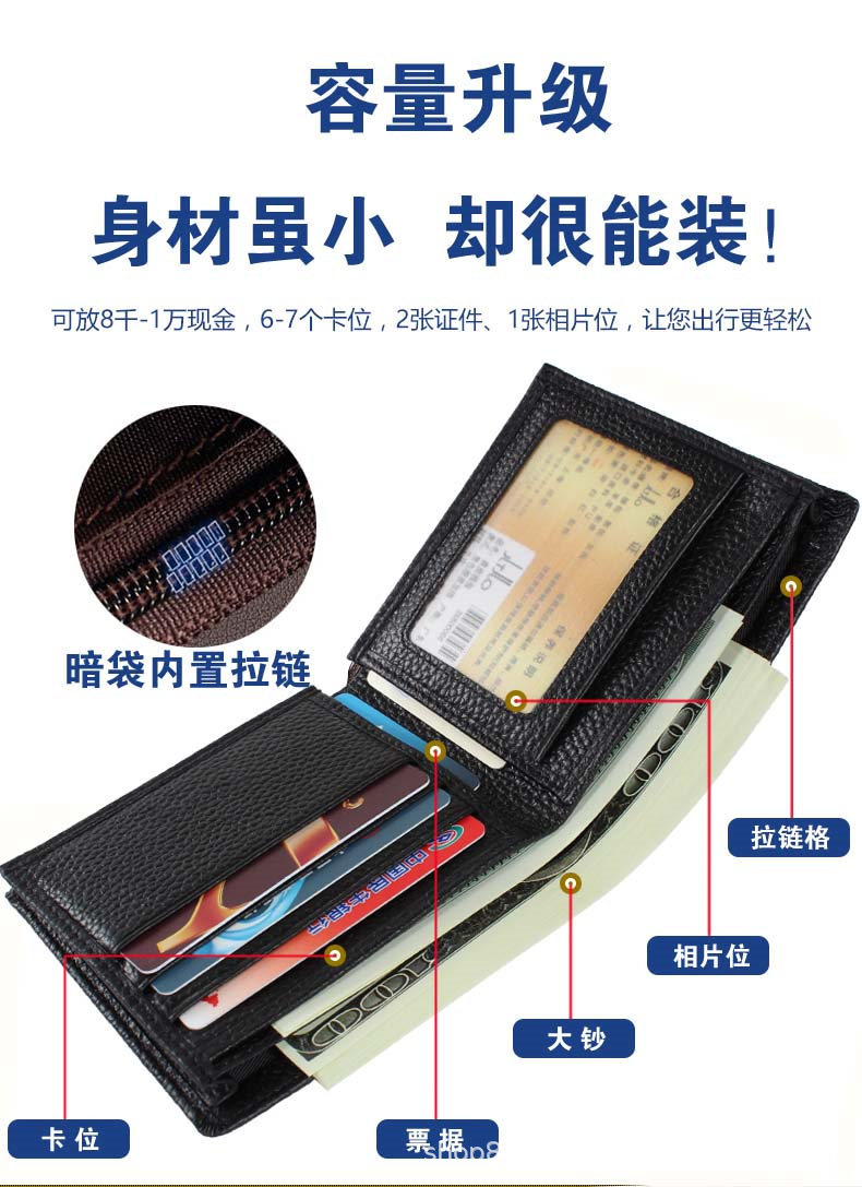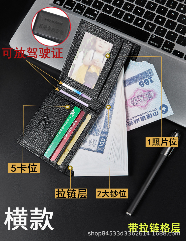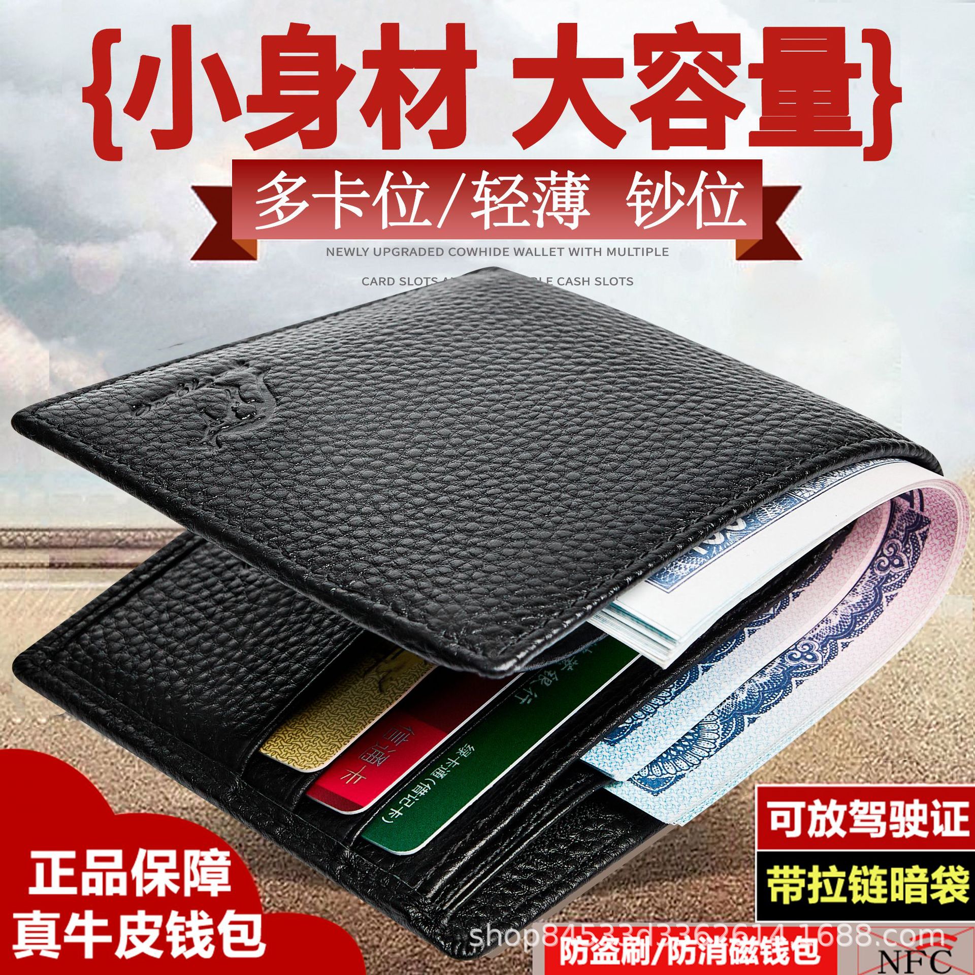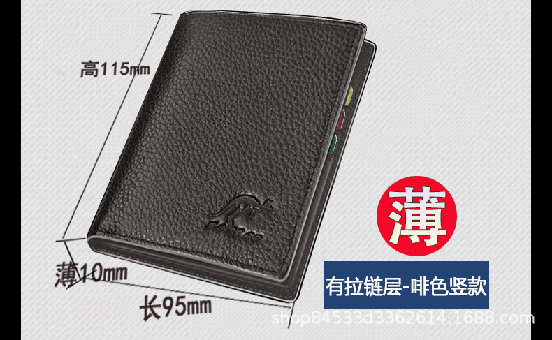 가죽 지갑 Cowhide 지갑 남자의 짧은 캥거루 도메인 Cowhide 지갑 지퍼 드라이버 라이센스 카드 가방 새로운스토어 가기