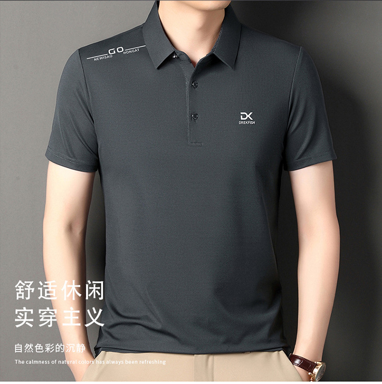라이브 핫 스타일 폴로 셔츠 남자의 여름 새로운 사업 캐주얼 남성용 아이스 실크 통기성 짧은 소매 티셔츠