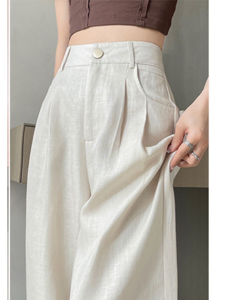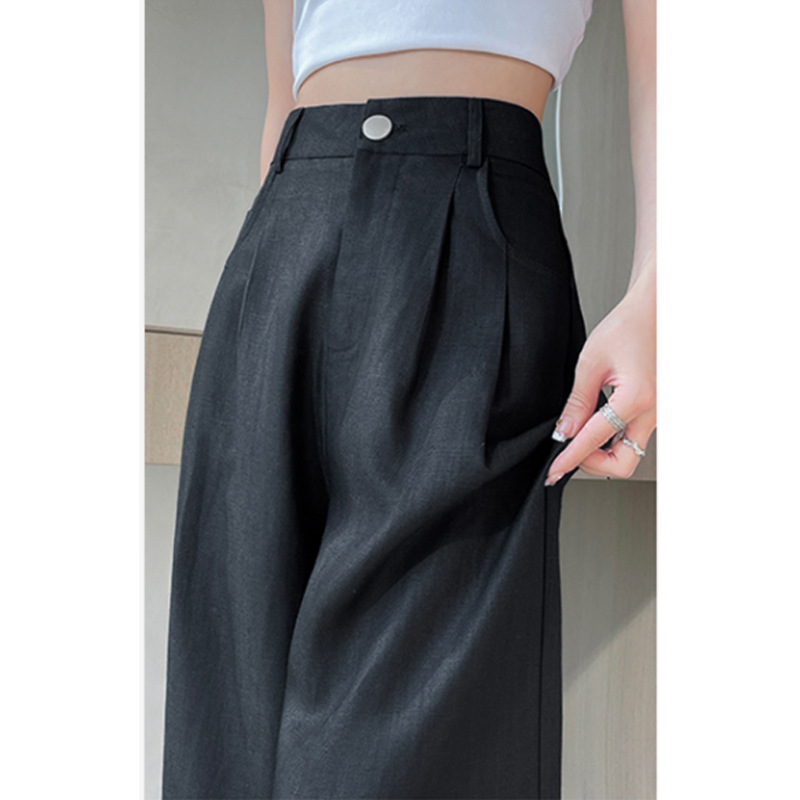 아이스 실크 린넨 와이드 레그 팬츠 여성용 여름 얇은 좁은 스트레이트 세트 팬츠 캐주얼 쿨 드래핑면 야마모토 팬츠