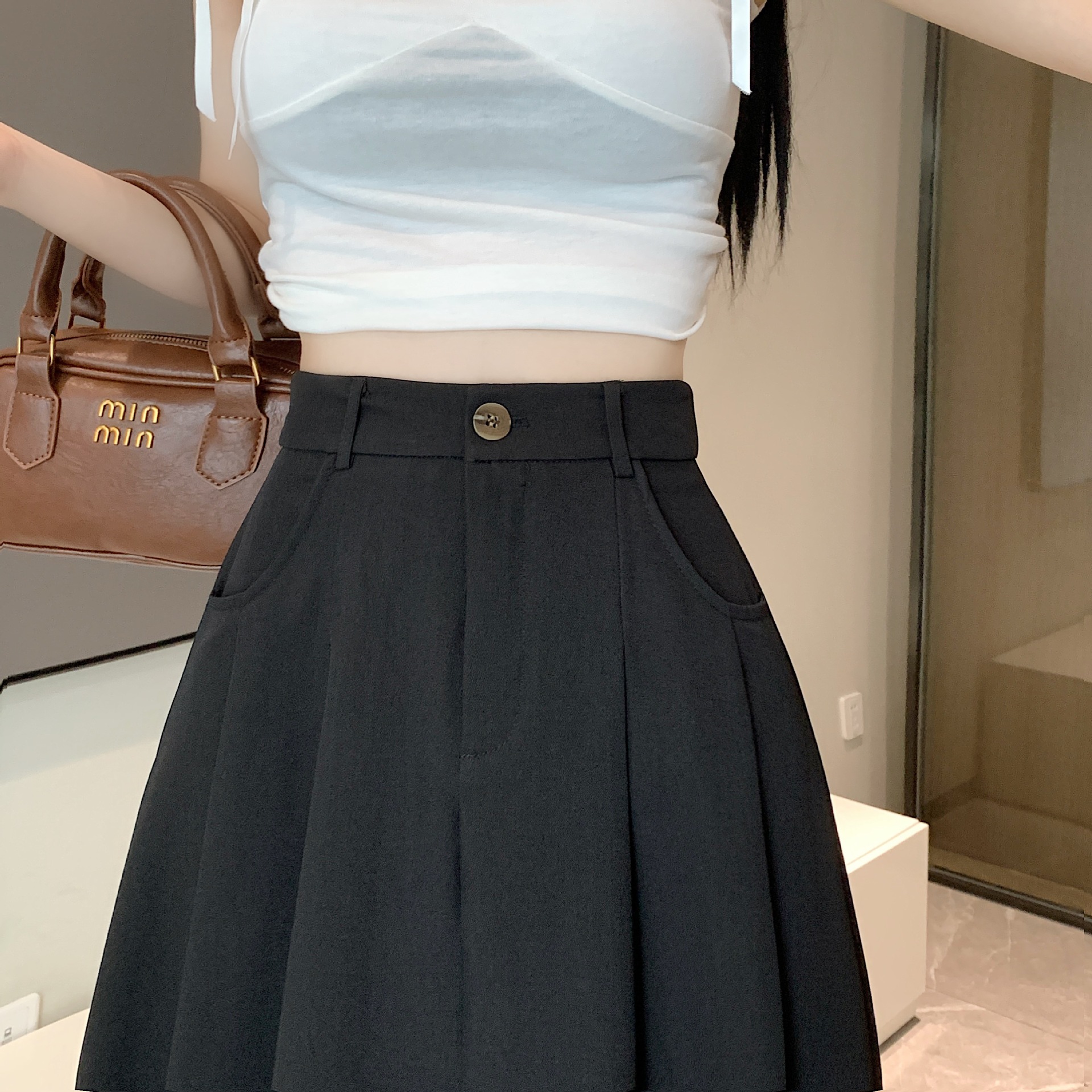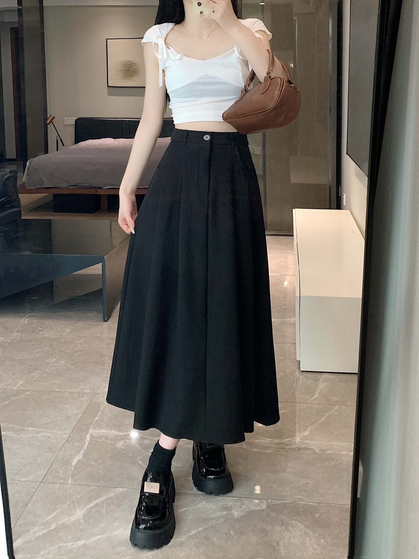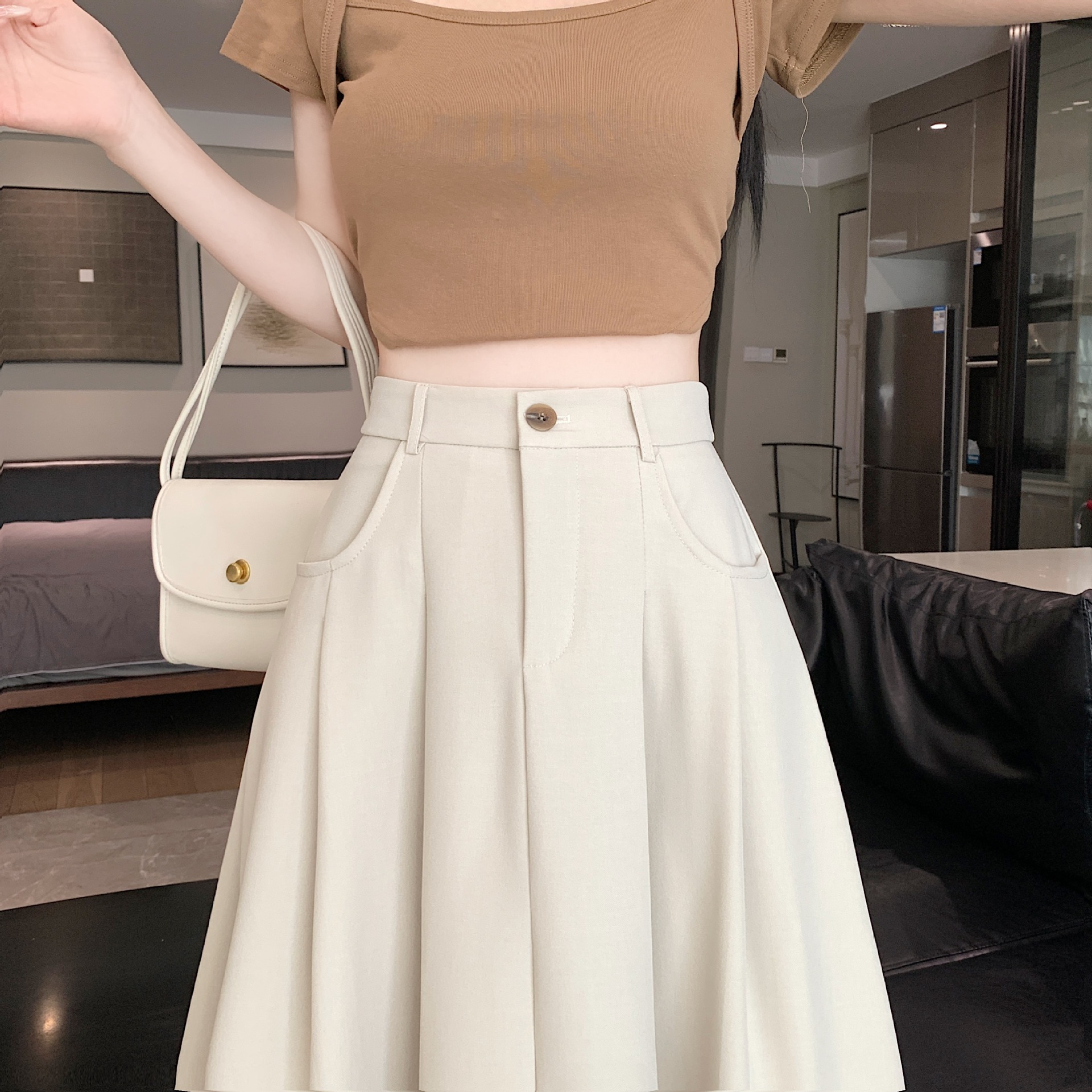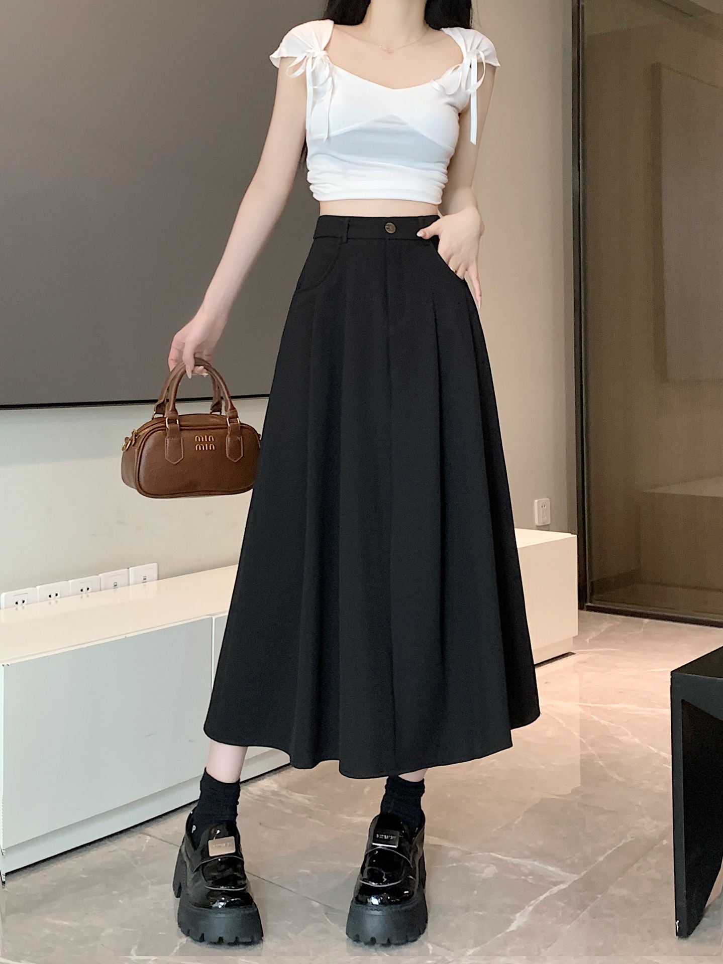 세트 패브릭 스커트 여성용 봄과 가을 새로운 캐주얼 A 라인 스커트 높은 허리 슬리밍 한국식 롱 스커트스토어 가기