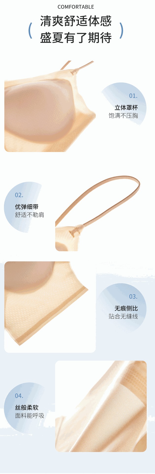 【오리지널】여성용 속옷 무봉제 통근용 여름 초박형 노와이어 작은 가슴 모아주는 시원한 조끼형 브라