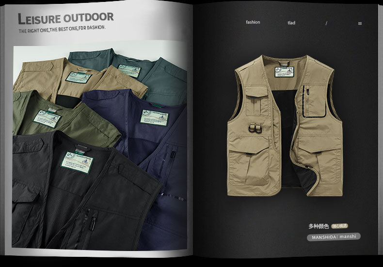 조끼 남자의 봄과 가을 멀티 포켓 작업복 조끼 야외 여행 등산 사진 빠른 건조 낚시 세트 재킷스토어 가기