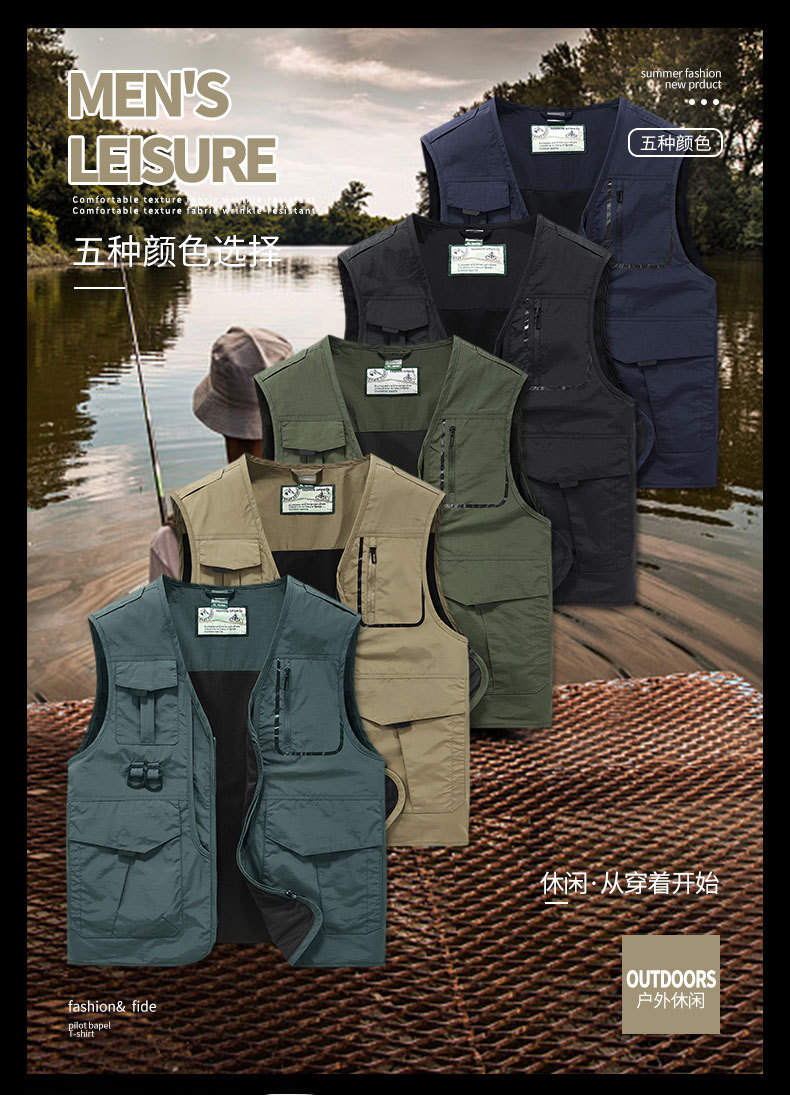 조끼 남자의 봄과 가을 멀티 포켓 작업복 조끼 야외 여행 등산 사진 빠른 건조 낚시 세트 재킷