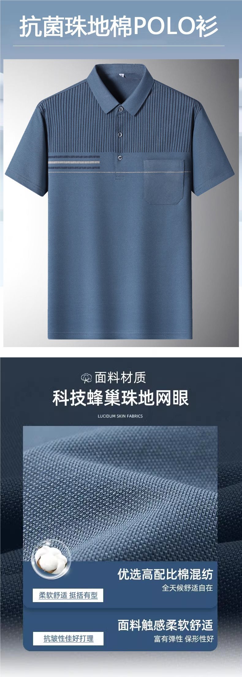 아빠 여름 티셔츠 반팔 리얼 포켓 쿨 중년 남성 폴로 셔츠 여름 중년 및 노인 할아버지 탑