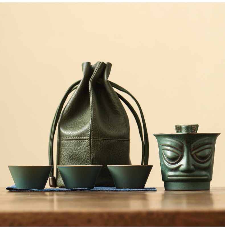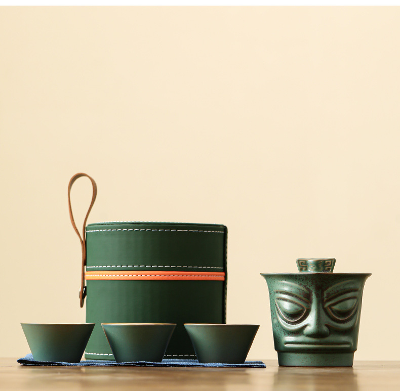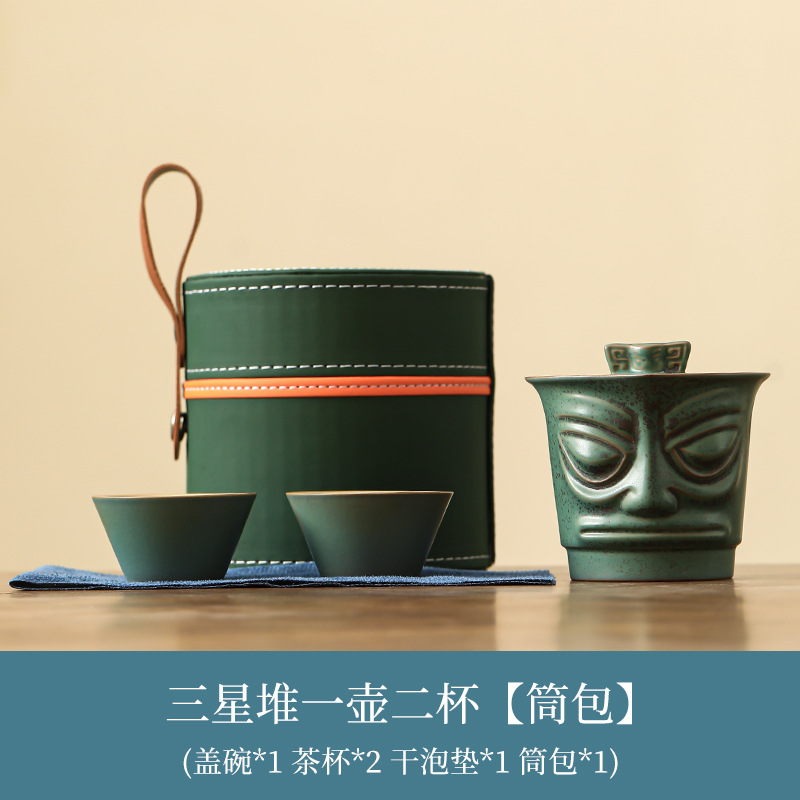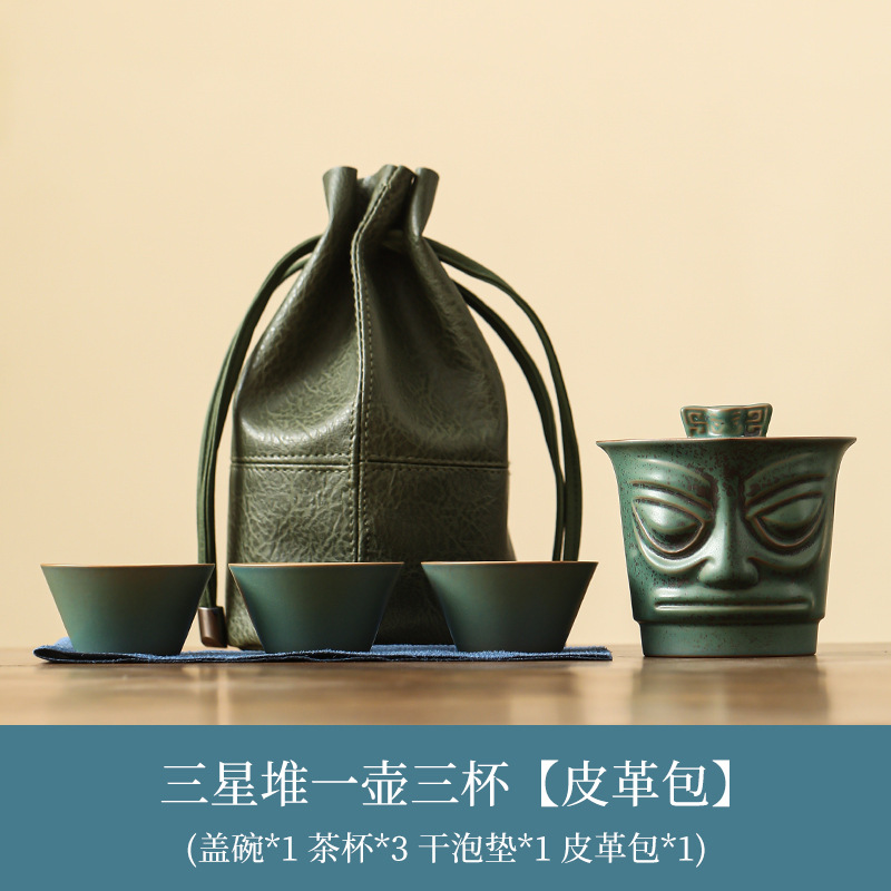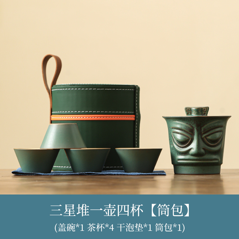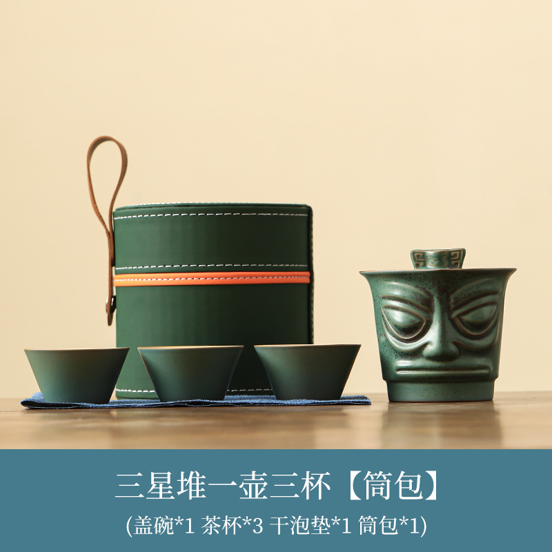 Sanxingdui 여행 차 세트 세트 세라믹 익스프레스 컵 1 팟 3 컵 야외 캠핑 캐리 온 차 냄비 찻잔스토어 가기