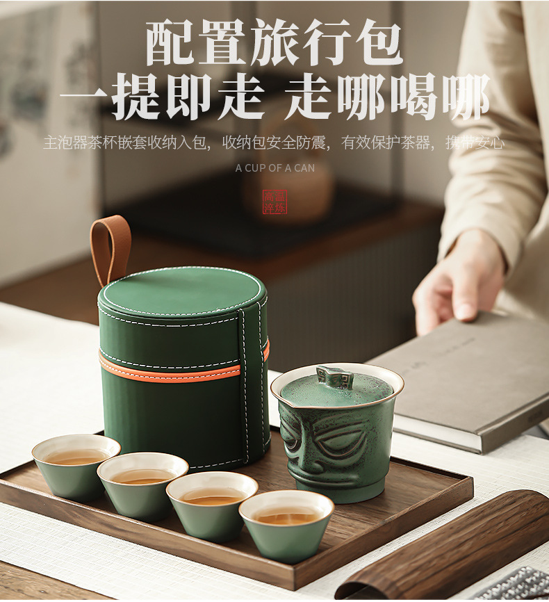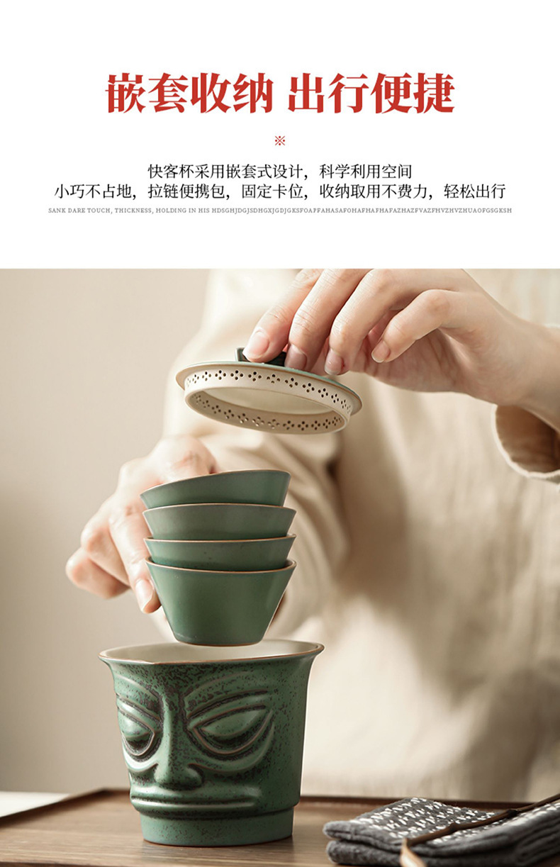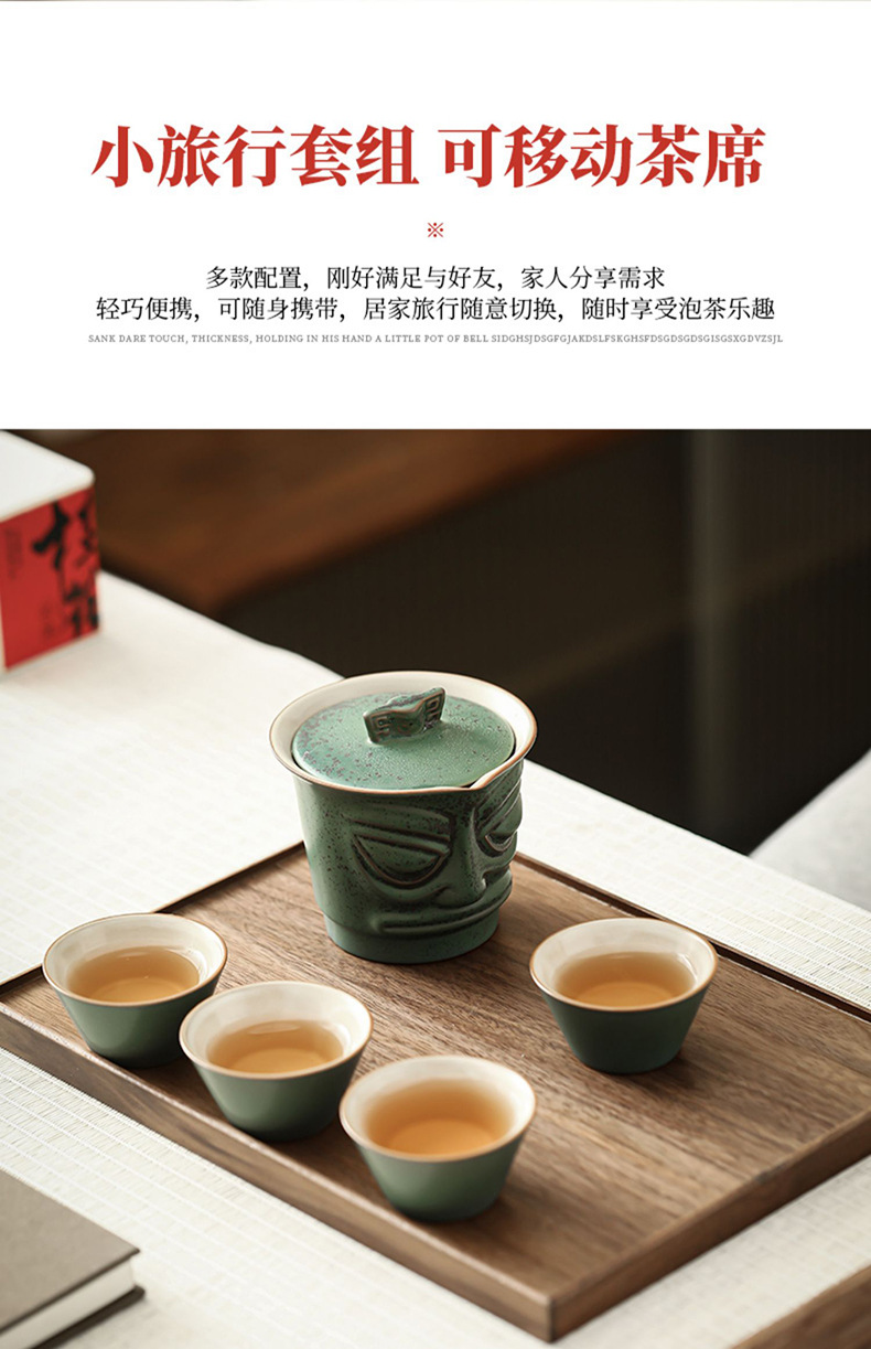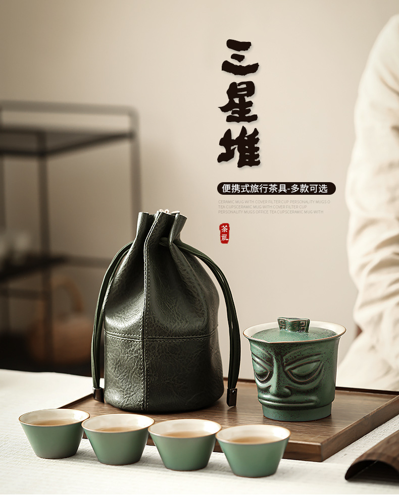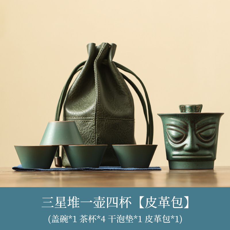 Sanxingdui 여행 차 세트 세트 세라믹 익스프레스 컵 1 팟 3 컵 야외 캠핑 캐리 온 차 냄비 찻잔스토어 가기