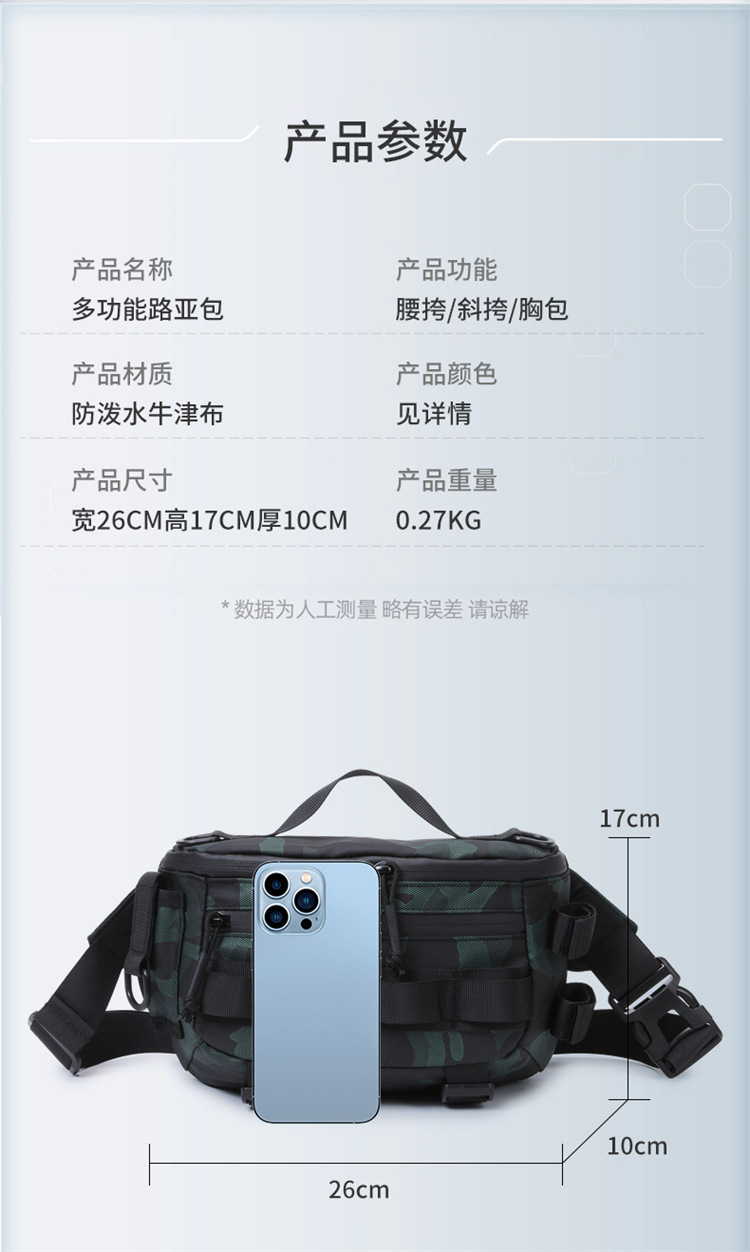 허리 가방 크로스 바디 이중 목적 다기능 루야 가방 내마모성 도구 남성 어깨 가슴 가방 야외 사이클링 오토바이 여행 작은 배낭