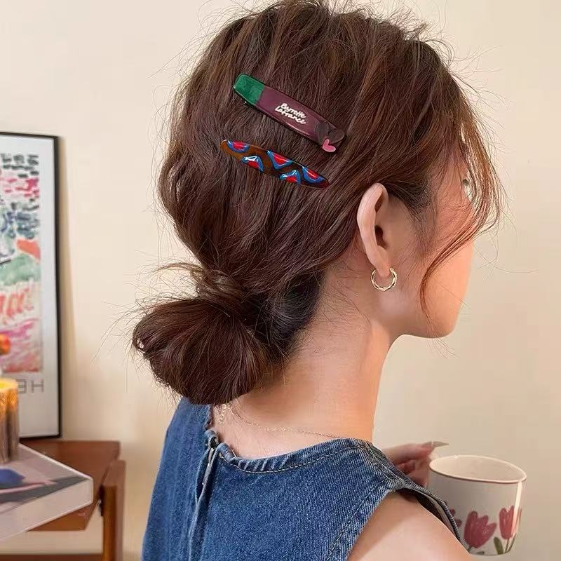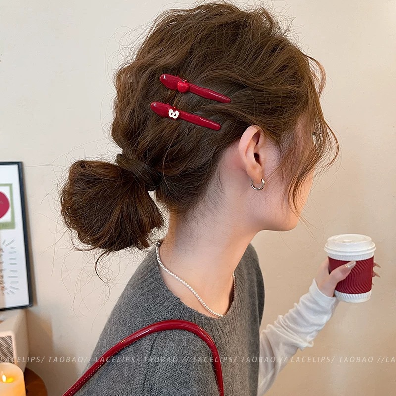 • 레트로 레드 아세테이트 엣지 러브 클립 3.5cm