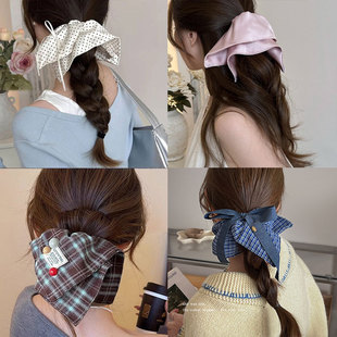 新款格子方巾扎发大肠发圈韩系超大号头绳高级感低丸子头发绳头饰
