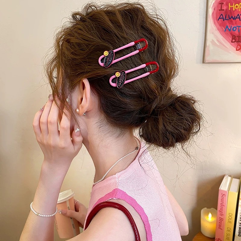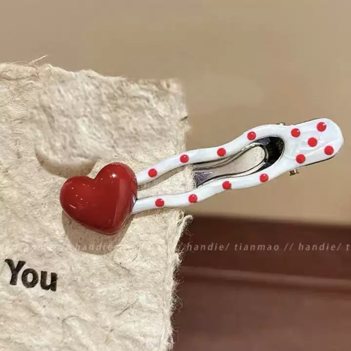 • 1#레드 하트 도트 펀칭 물결 옆머리핀 [1개입]