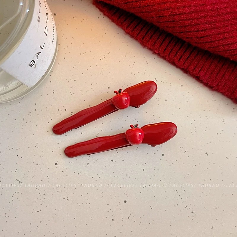 • 9#통째로 붉은 사과 머리핀 [1쌍]