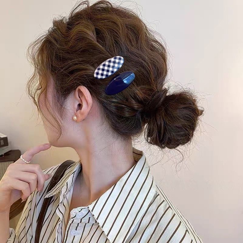 • 11#네이비 블루 체크 무늬 솔리드 컬러 투피스 헤어 클립 세트