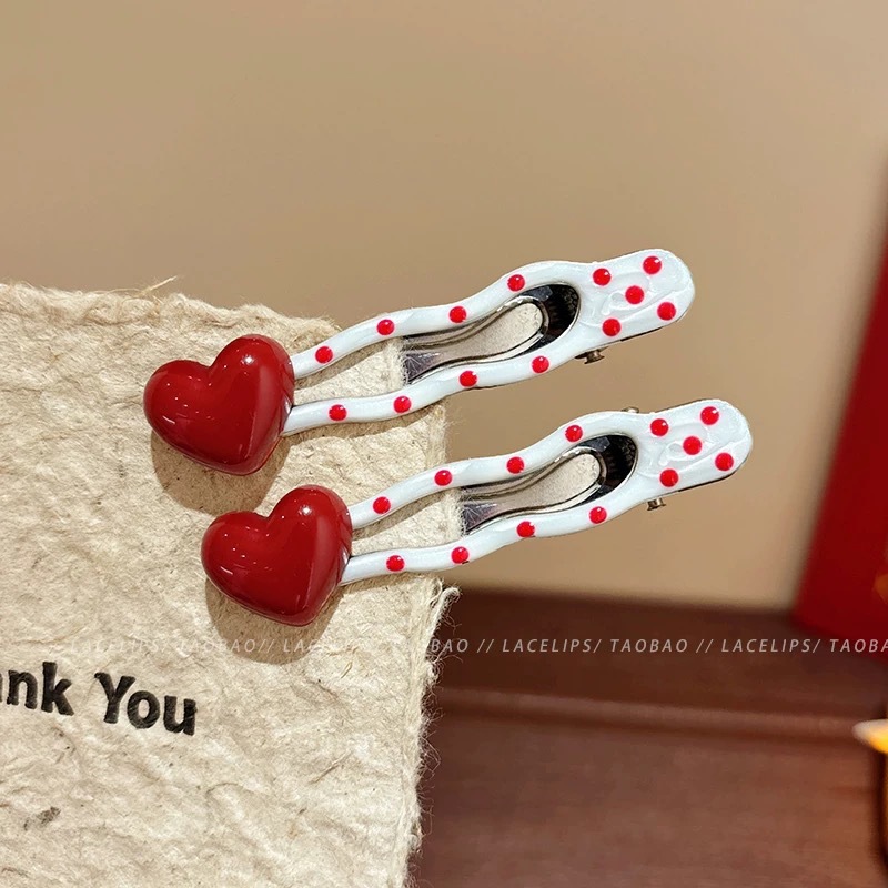 • 3 # 레드 러브 도트 무늬 중공 웨이브 사이드 클립 [페어 세트]