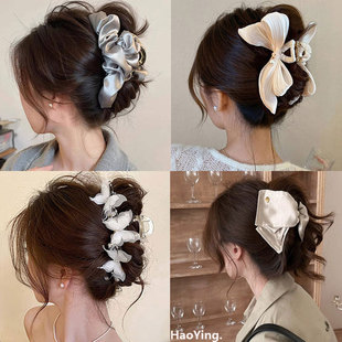 高级感缎面大号抓夹女2025新款轻奢褶皱后脑勺夹子鲨鱼夹头饰发卡