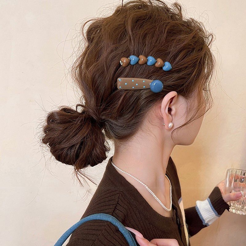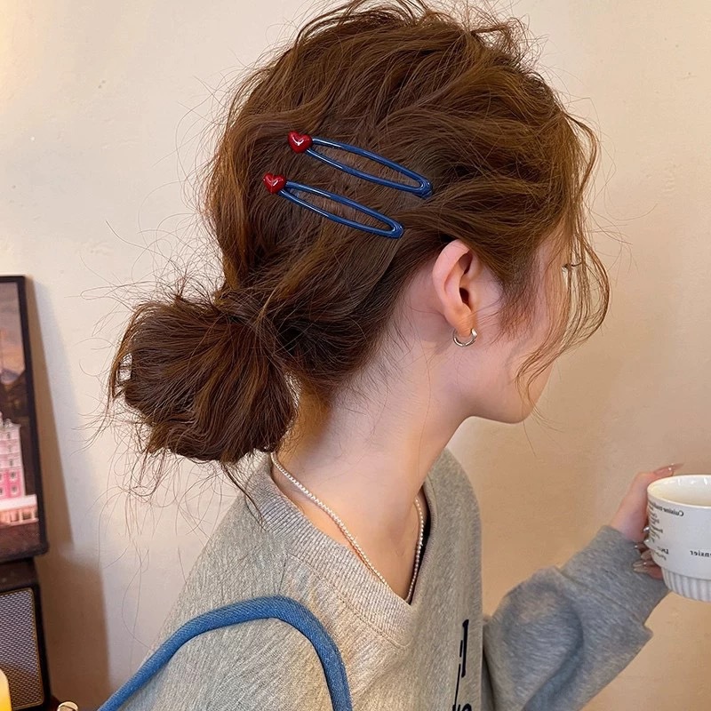 • 브라운과 블루의 대비되는 러브 사이드 클립 [쌍]