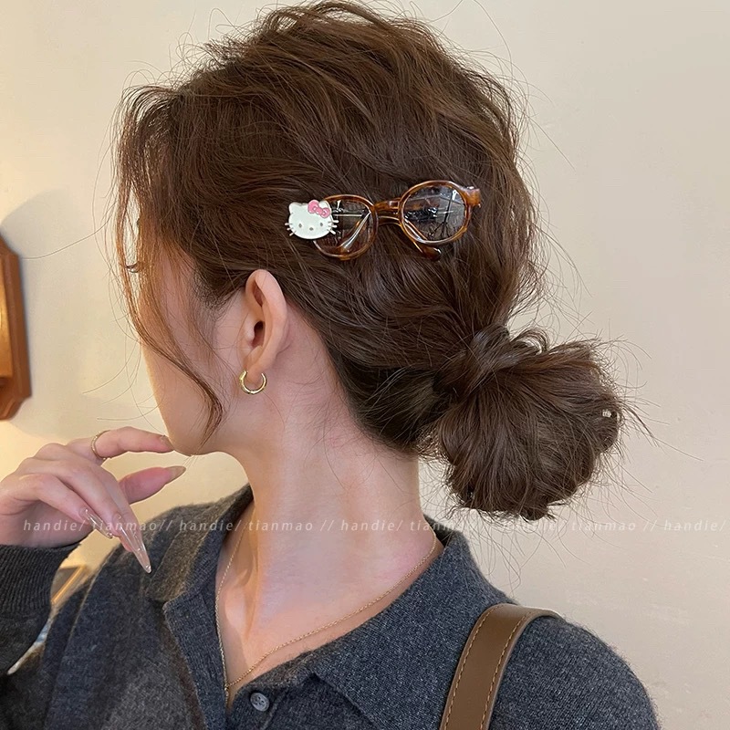 • 라이트 브라운 아세테이트 엣지 러브 클립 3.5cm