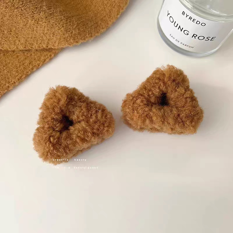 • 커플 - 카멜 브라운 양털 삼각 헤어 클립
