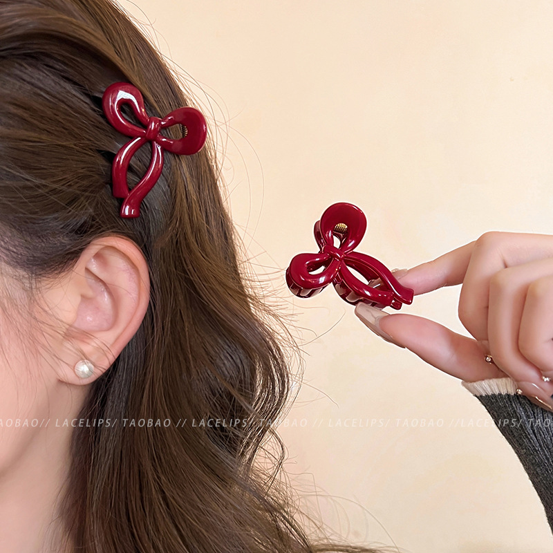 • 단품 - 빨간색 리본 나비 매듭 머리핀