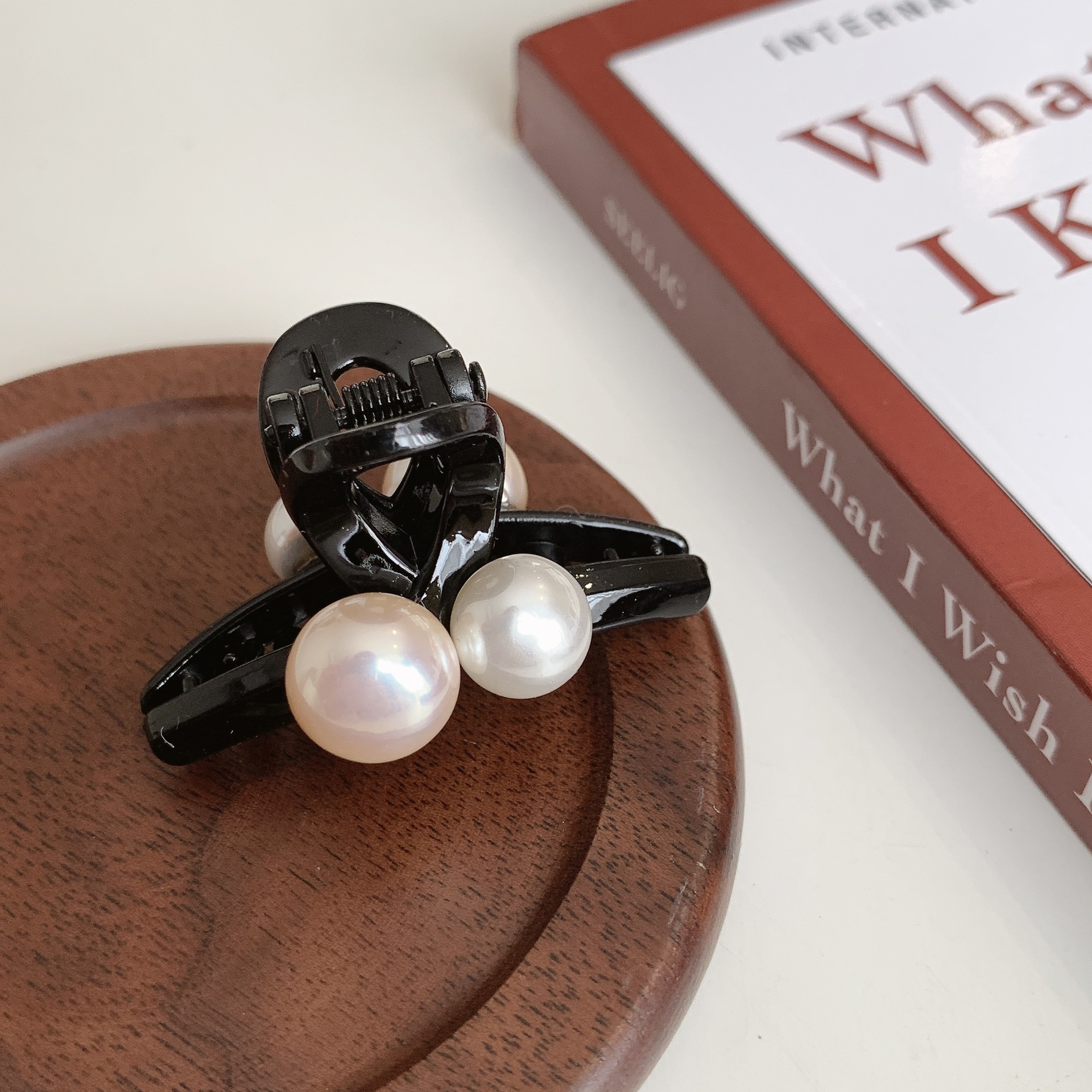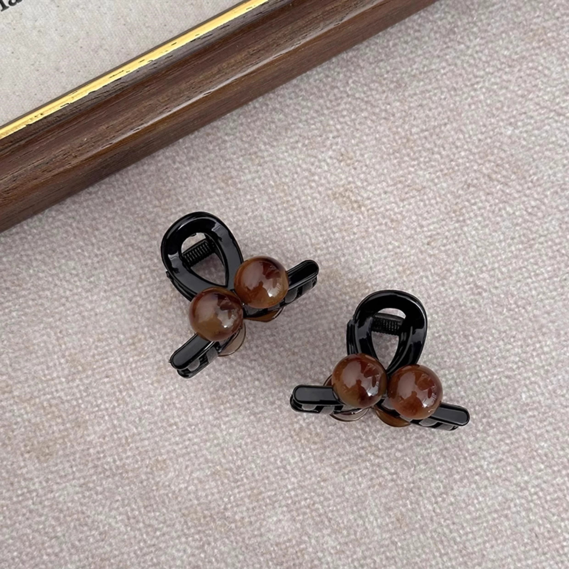 • Maillard 다크 브라운 더블 진주 작은 그립 클립