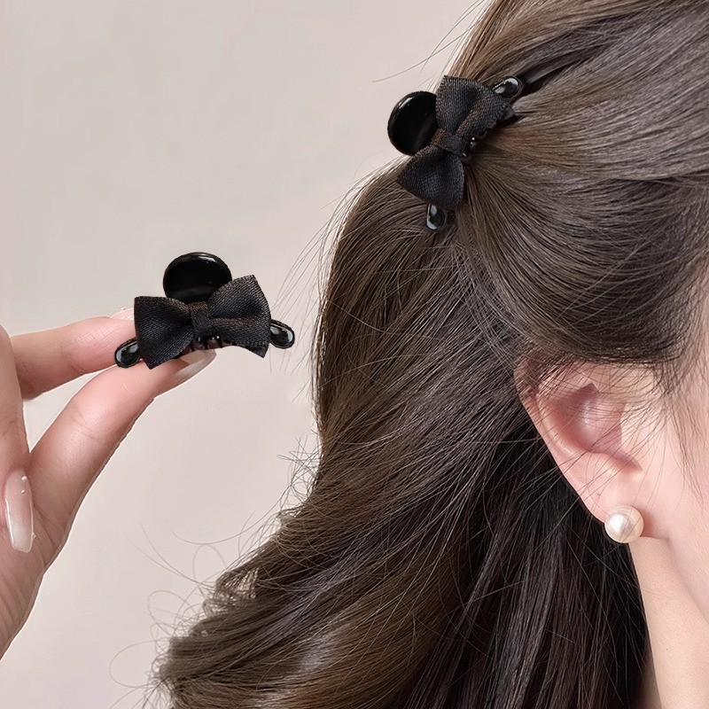 • 한 쌍 - 블랙 리본 진주 머리핀