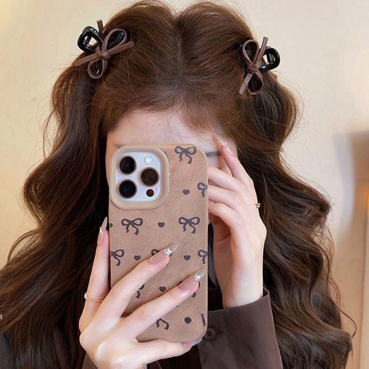 • 커플 - 카멜 브라운 가죽 리본 헤어 클립