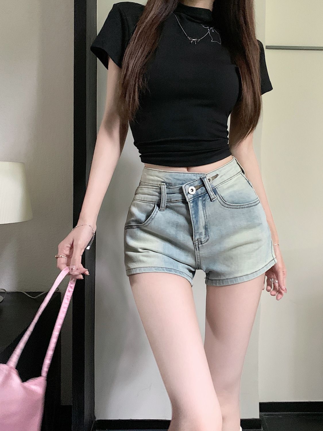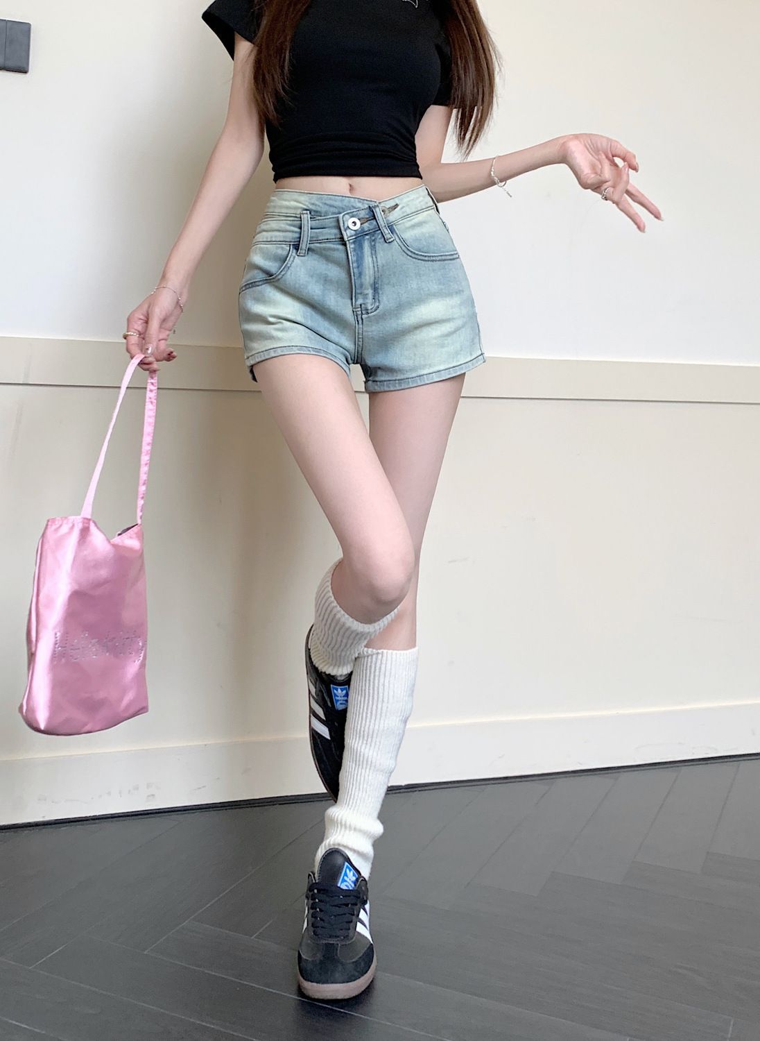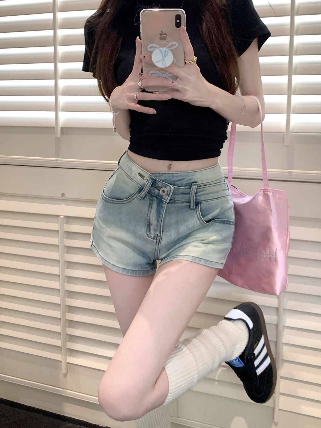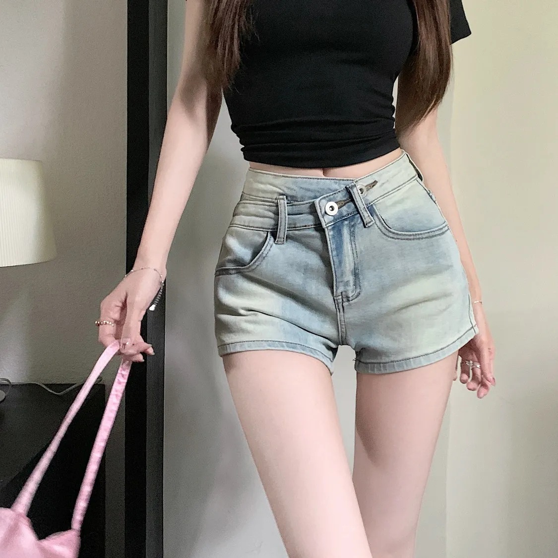 빈티지 허니 엉덩이 데님 반바지 여성 여름 스파이스 소녀 섹시한 낮은 허리 불규칙한 디자인 스트레치 엉덩이 핫 바지