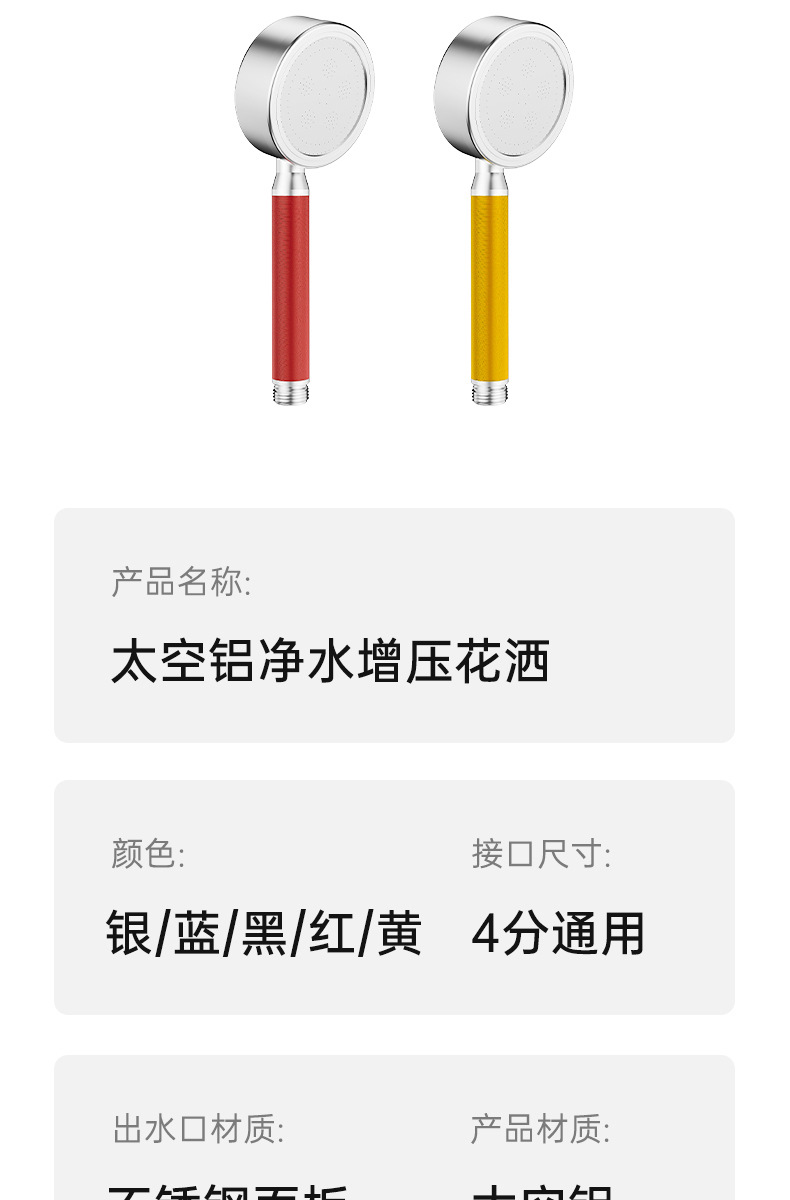 스페이스 알루미늄 필터 부스터 샤워헤드 욕실 샤워기 수압 증가 샤워기