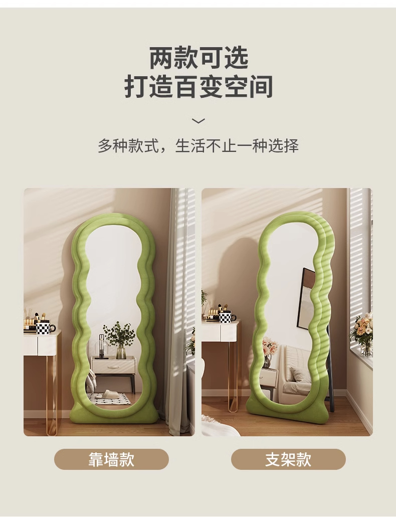 인터넷 연예인 웨이브 전신 거울 바닥 거울 크림 Ins 스타일 피팅 거울 가정용 소녀 침실 외계인 Zheng Zhe