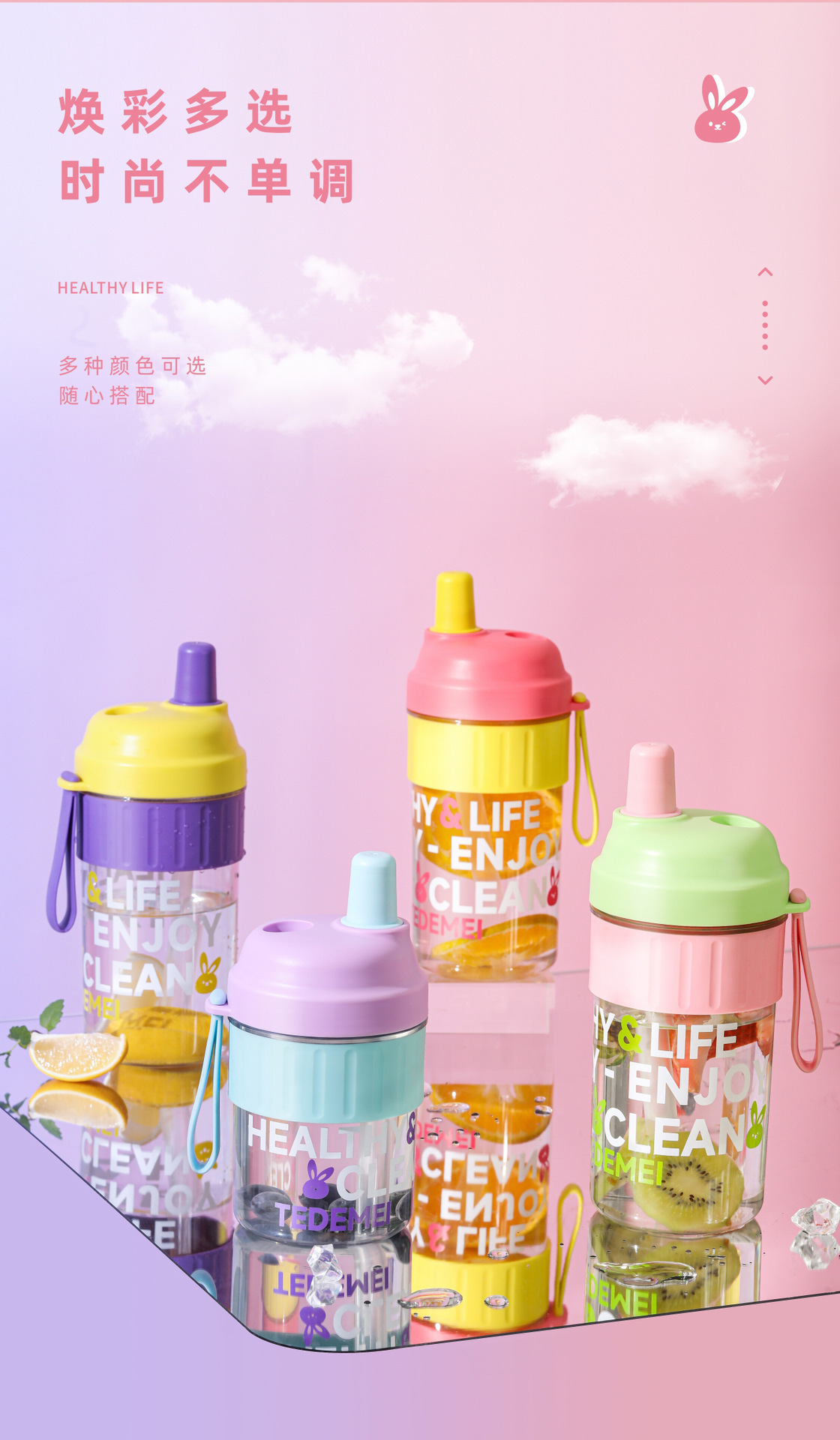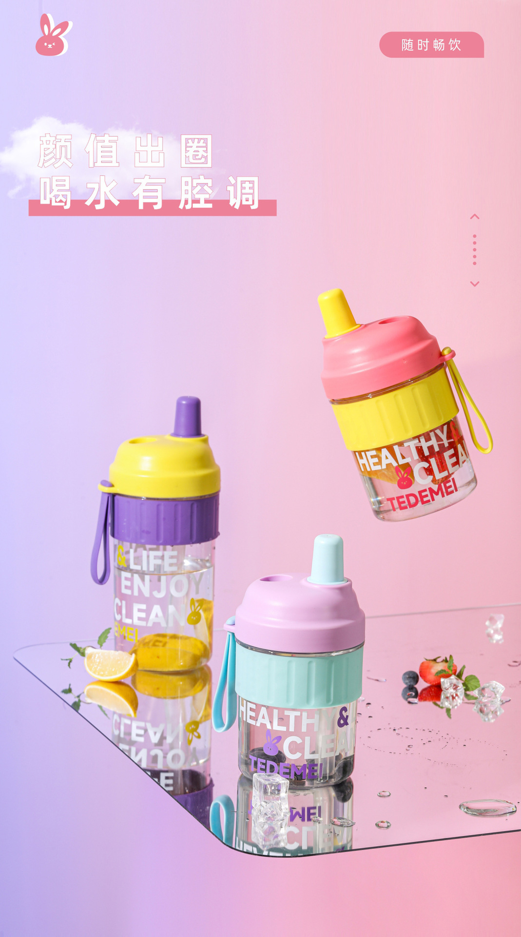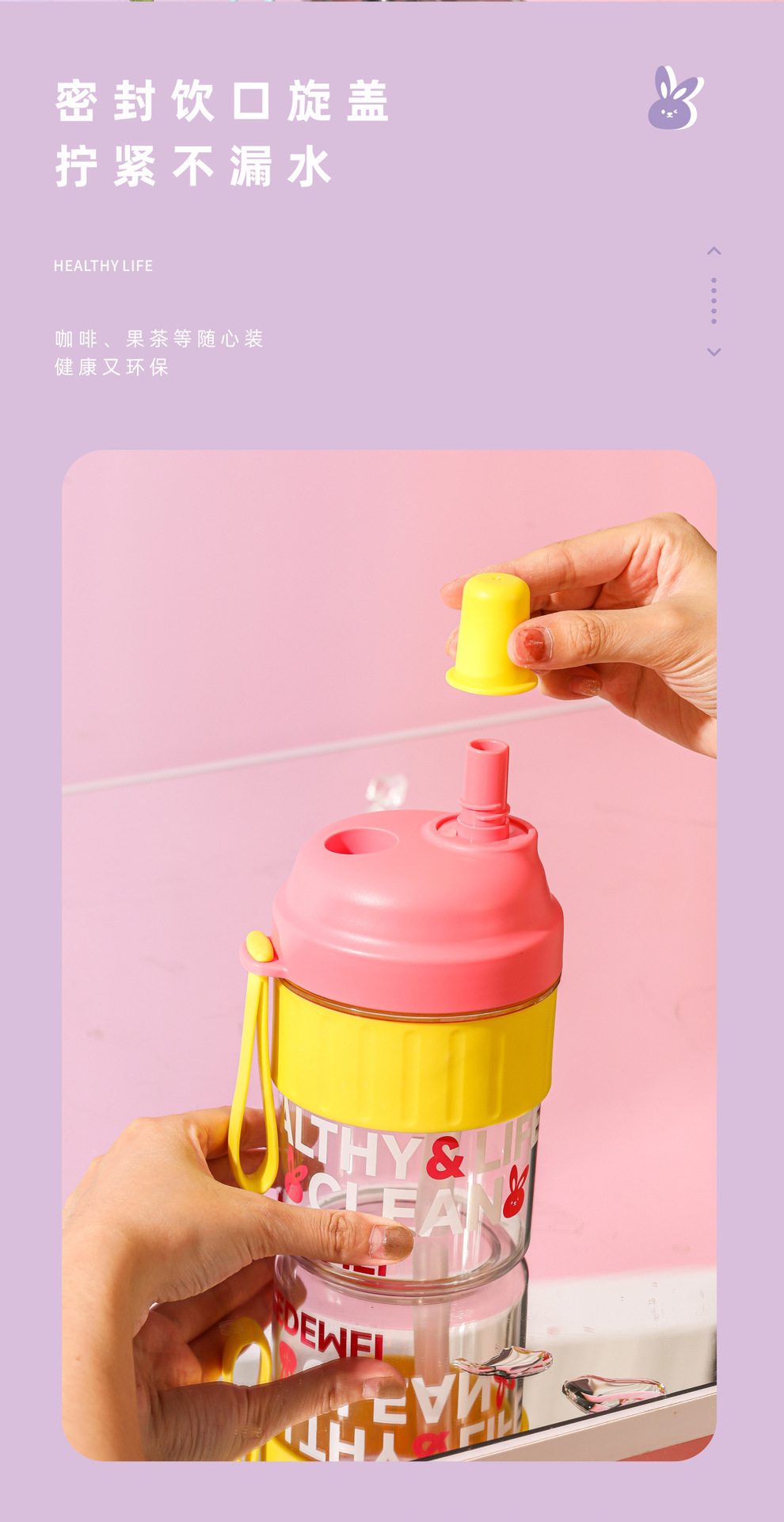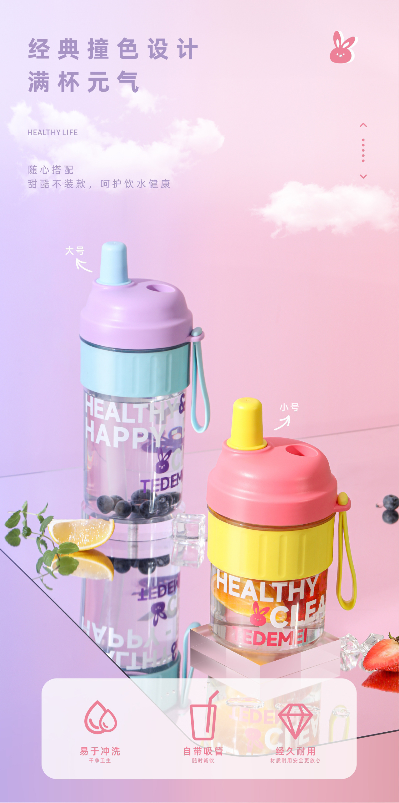 여학생용 물컵, 예쁜 디자인의 빨대컵, 여름 휴대용 대용량 고온에 강한 학생용 여름 스포츠 물병
