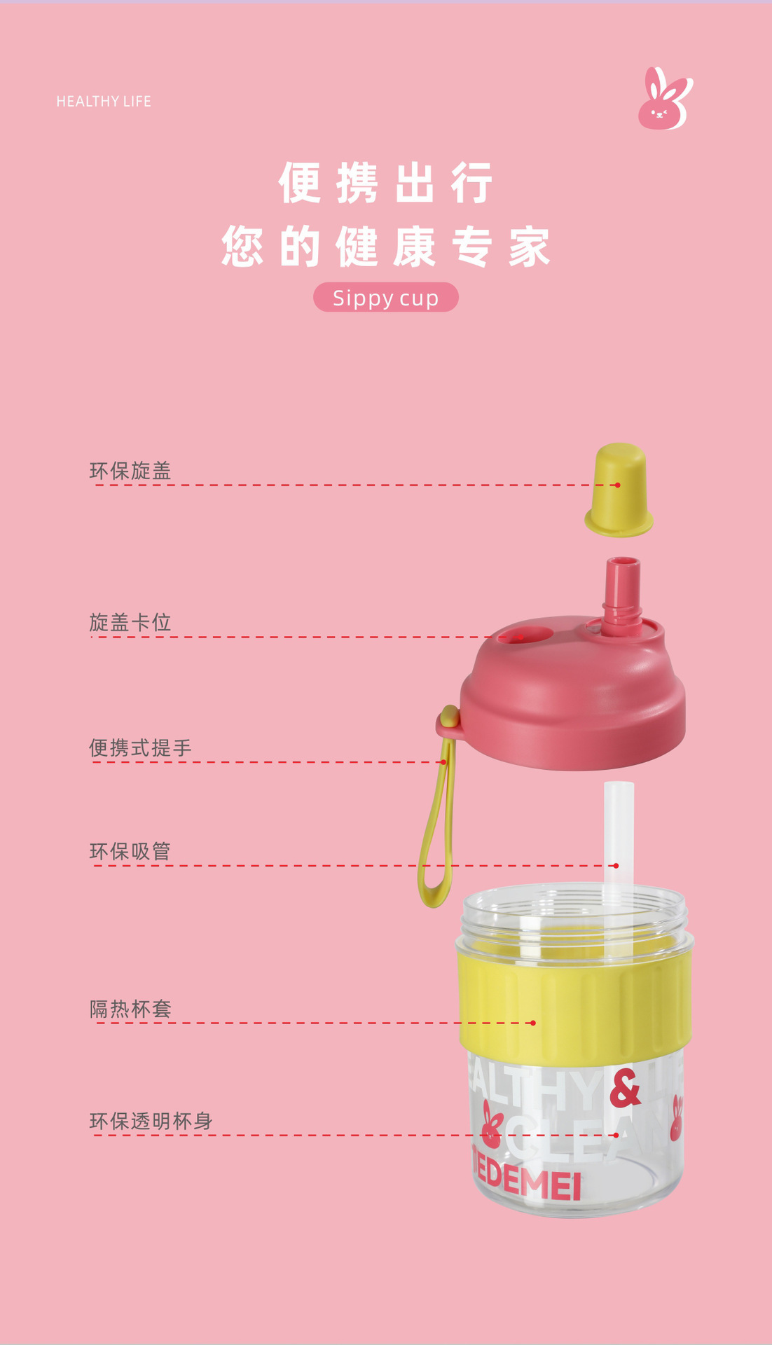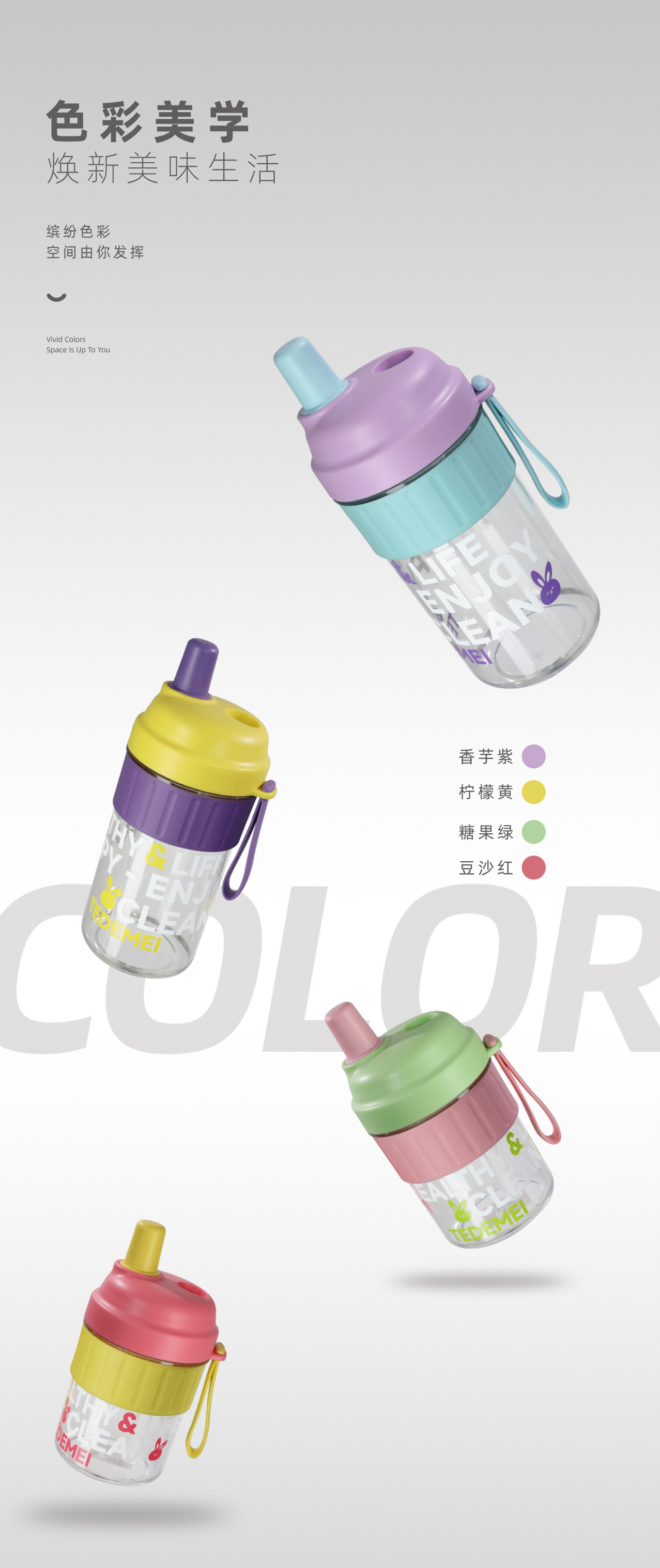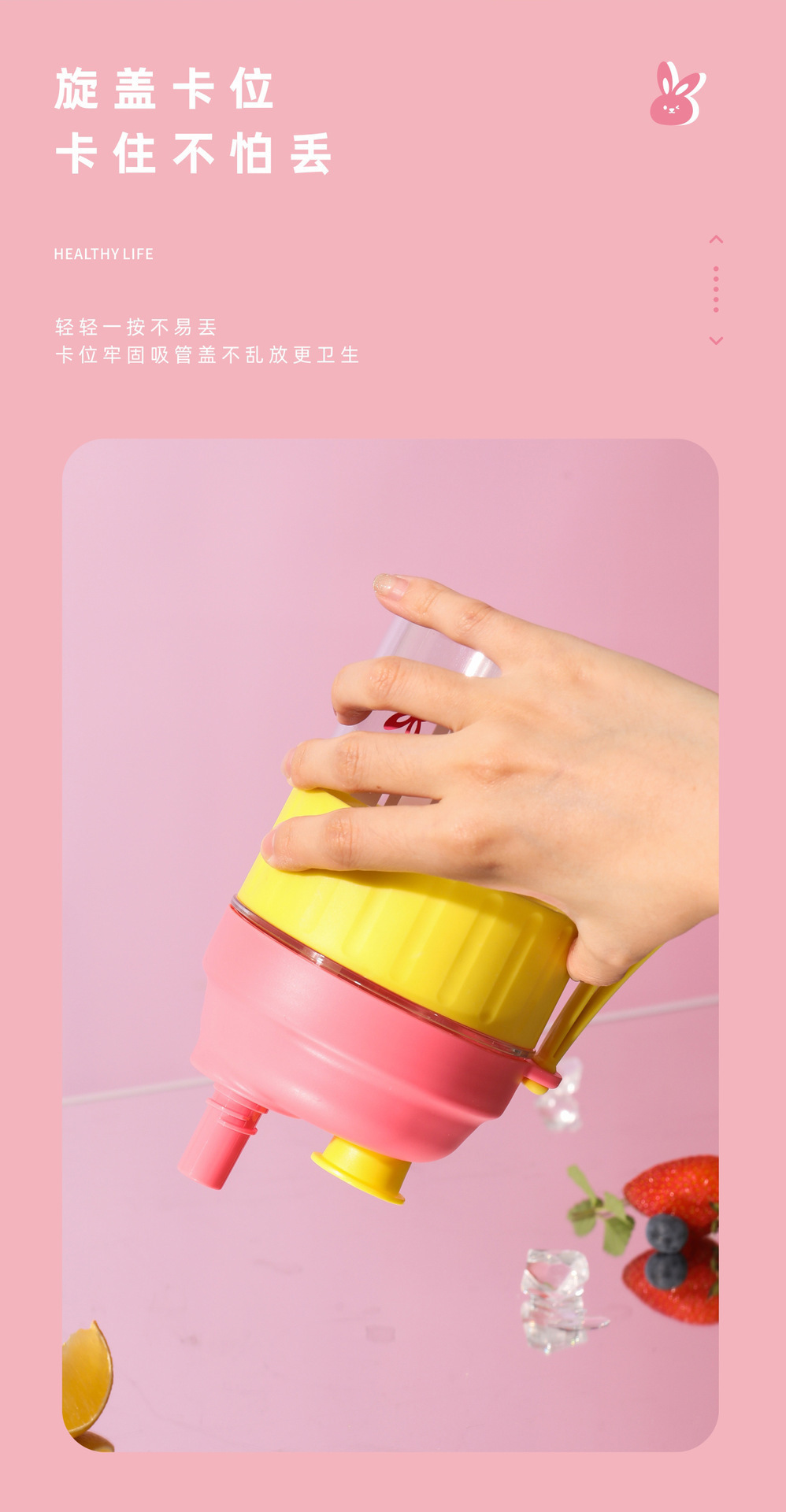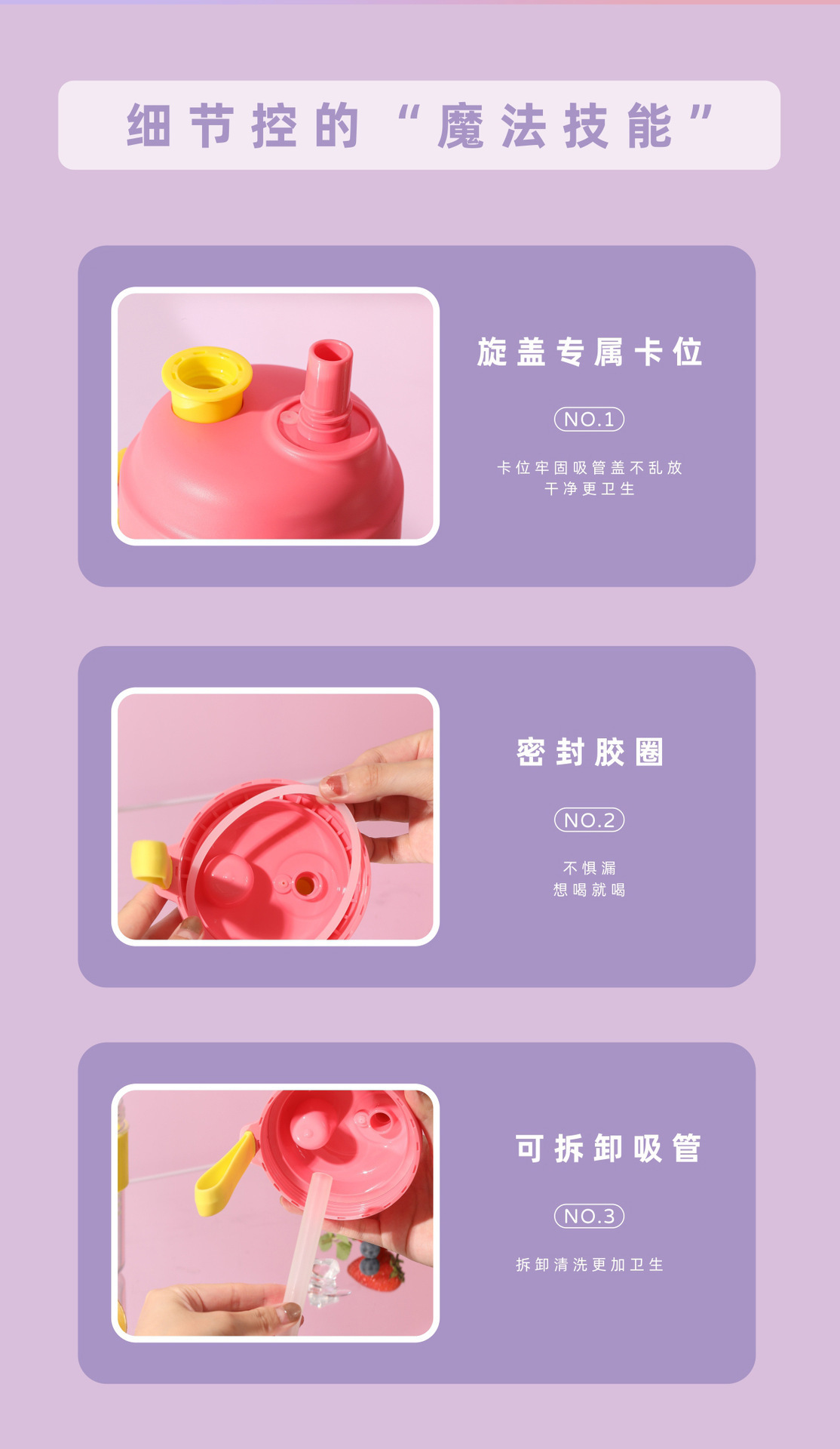 여학생용 물컵, 예쁜 디자인의 빨대컵, 여름 휴대용 대용량 고온에 강한 학생용 여름 스포츠 물병