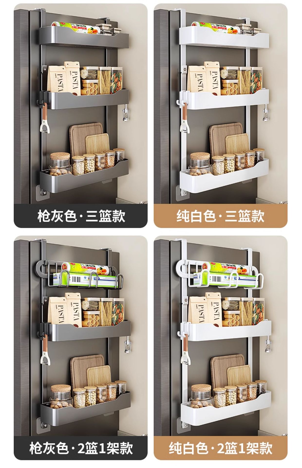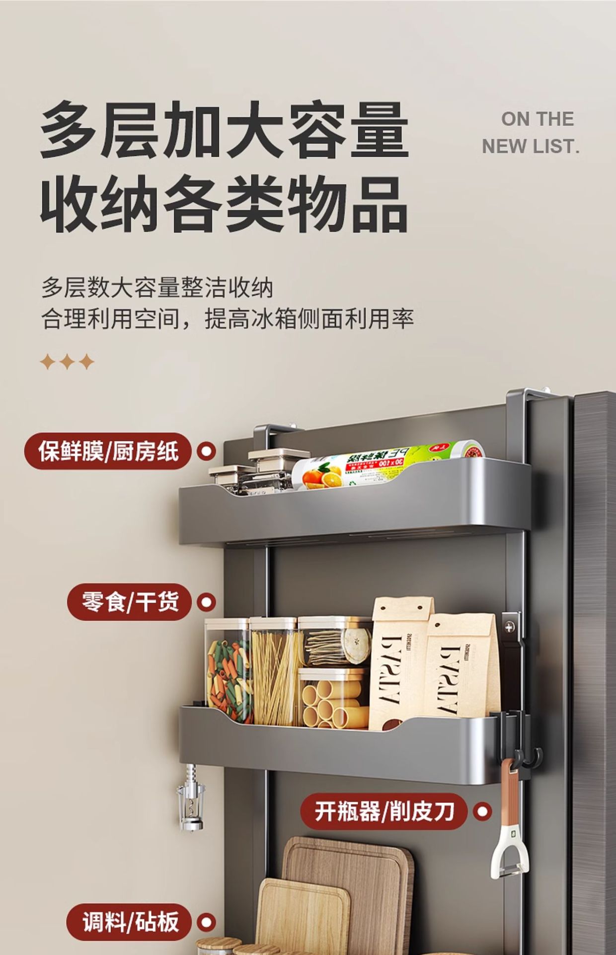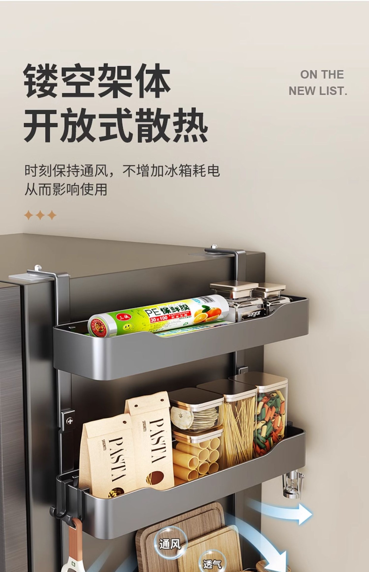 O & 주방 냉장고 보관 랙 사이드 스토리지 랙 벽걸이 형 가정용 다기능 다층 조미료 제품 보존 필름스토어 가기