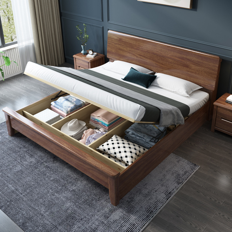 호두 노르딕 솔리드 우드 침대 1.8 m 간단한 현대 싱글 더블 침대 1.5 m 작은 아파트 마스터 침실 보관 웨딩 침대