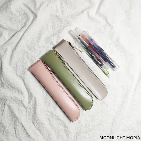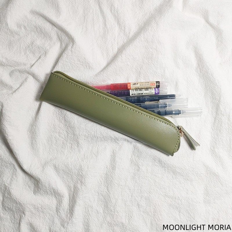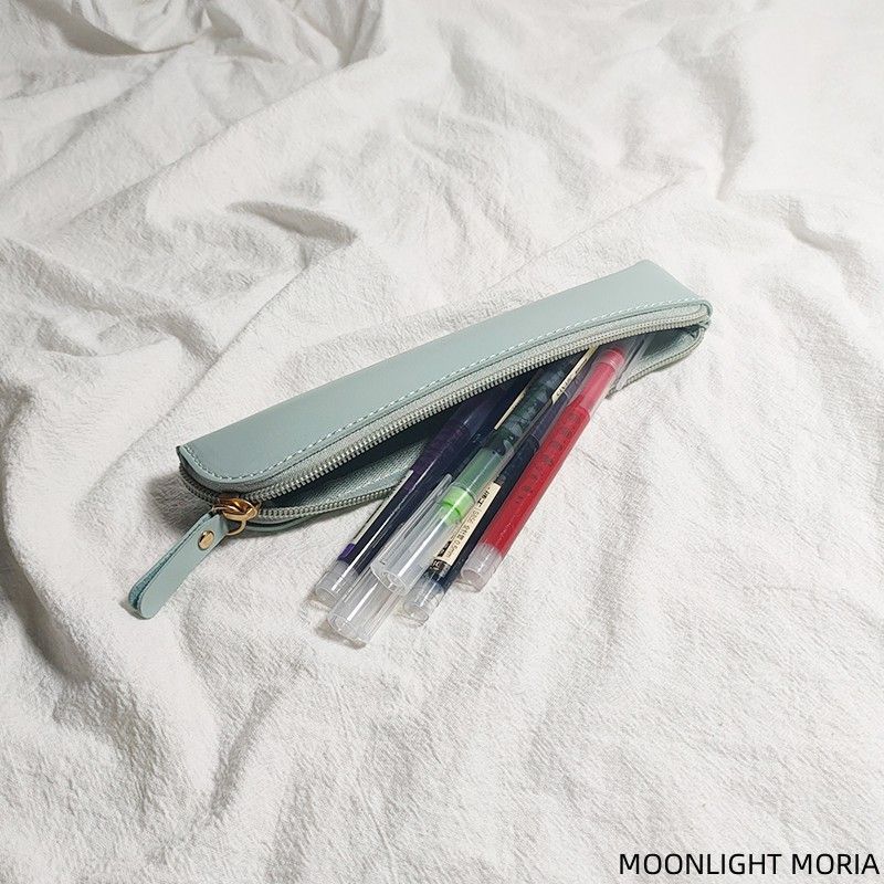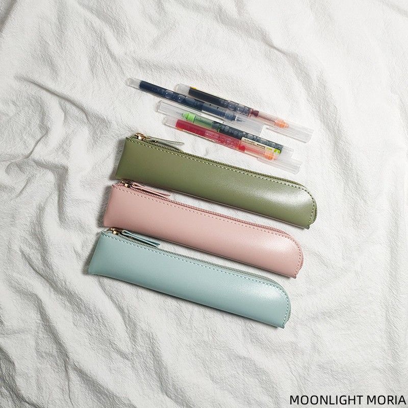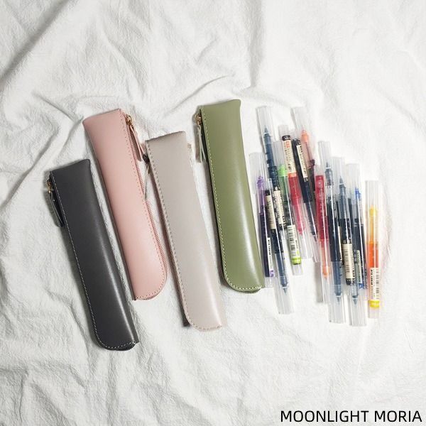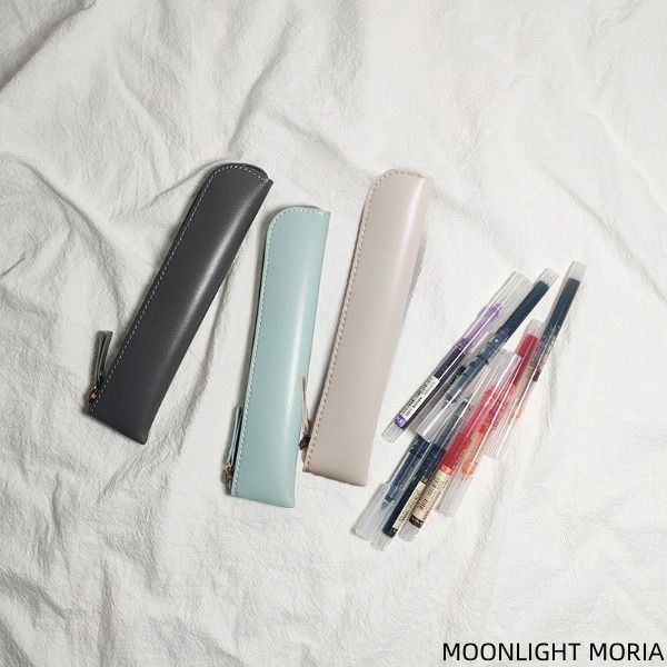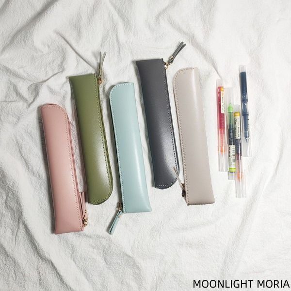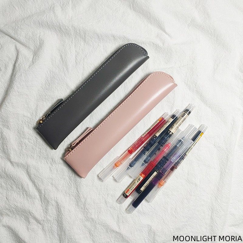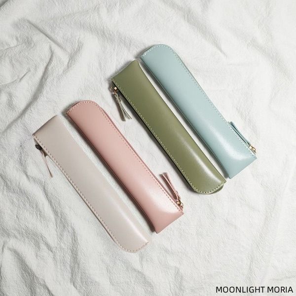 유행 간단한 테두리 가죽 연필 케이스 새로운 창조적 인 미니 가죽 연필 케이스 학생 문구 저장 펜 케이스스토어 가기