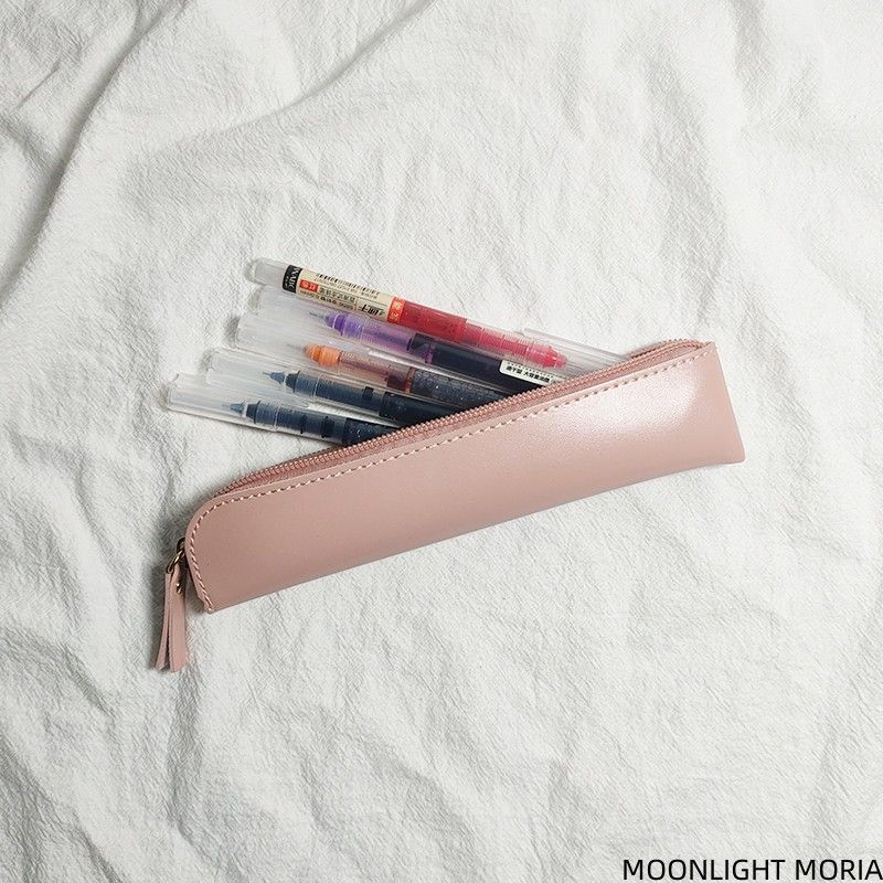 유행 간단한 테두리 가죽 연필 케이스 새로운 창조적 인 미니 가죽 연필 케이스 학생 문구 저장 펜 케이스