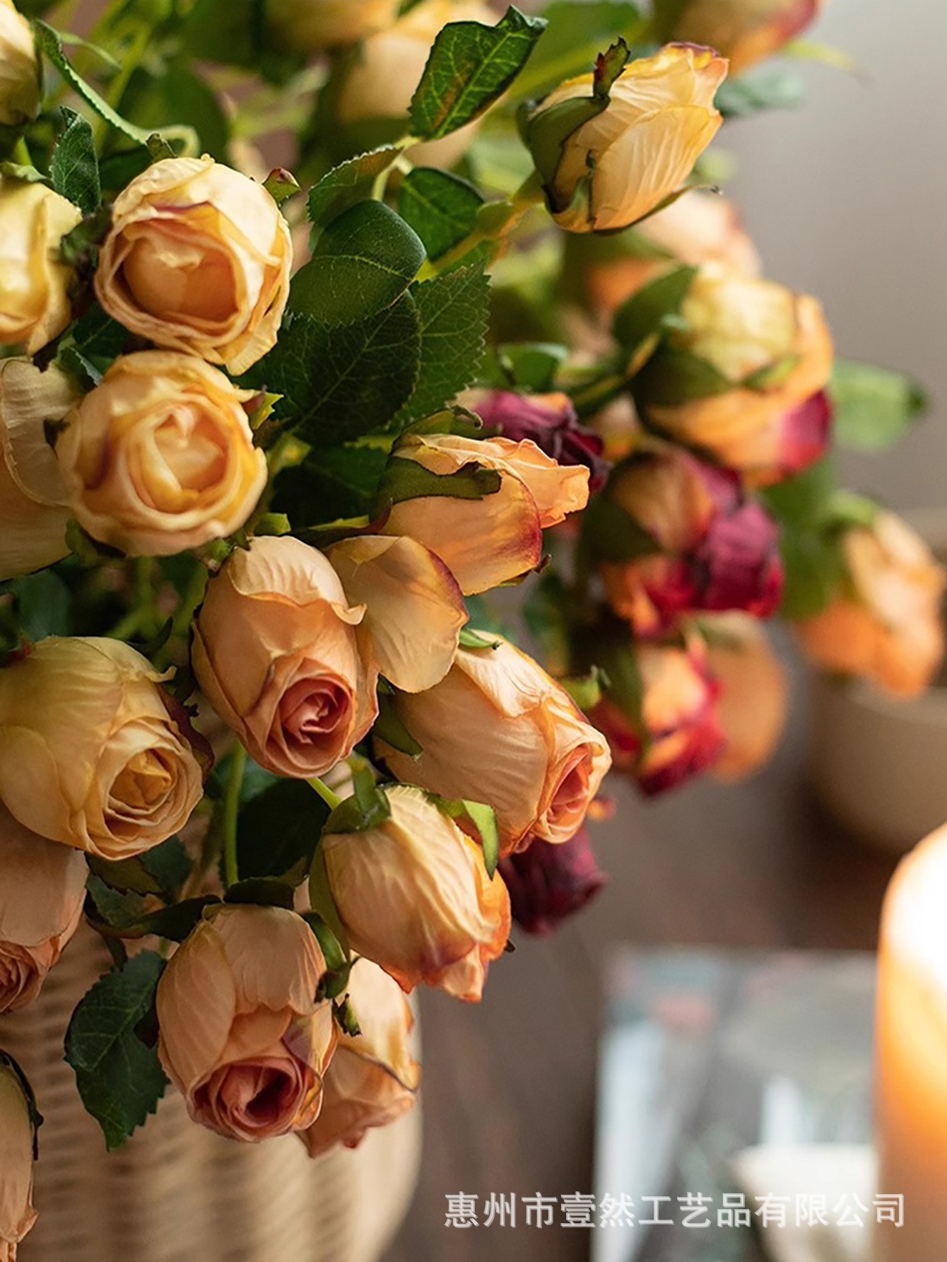 产品材质:绢布花头+塑料枝干+铁丝