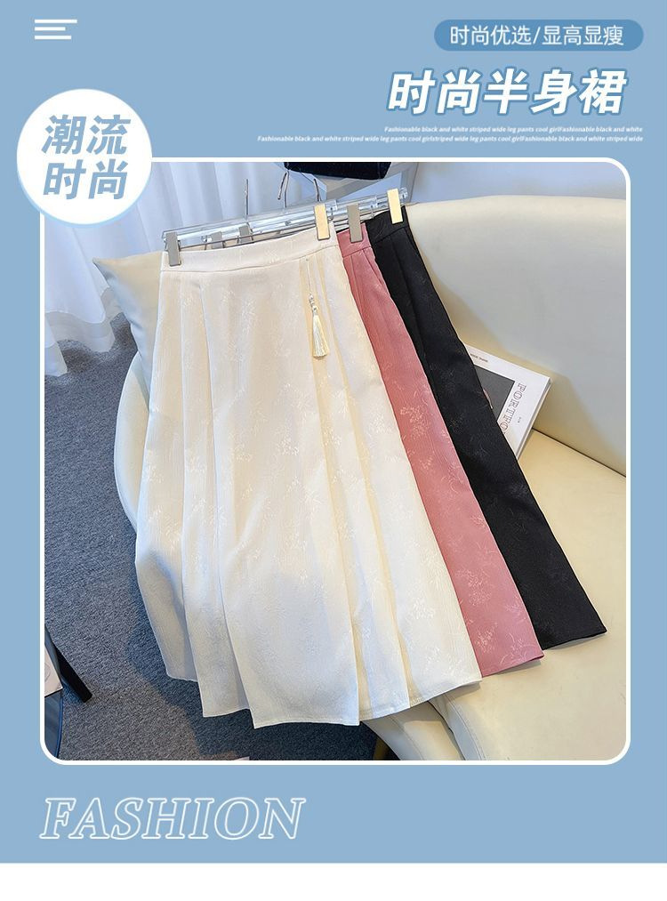 국경 간 공급 패션 새로운 중국 자카드 플리츠 스커트 국가 스타일 높은 허리 슬림 말 얼굴 원피스 머리카락 세대스토어 가기