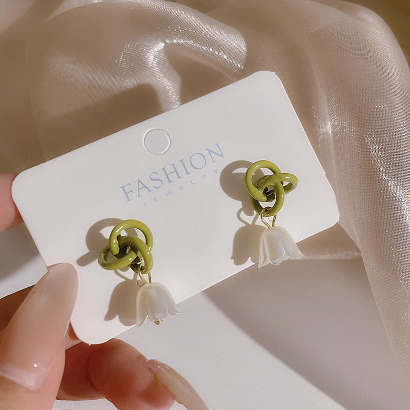 • 186 # 활 바람 차임 꽃 귀걸이-녹색 실버 바늘