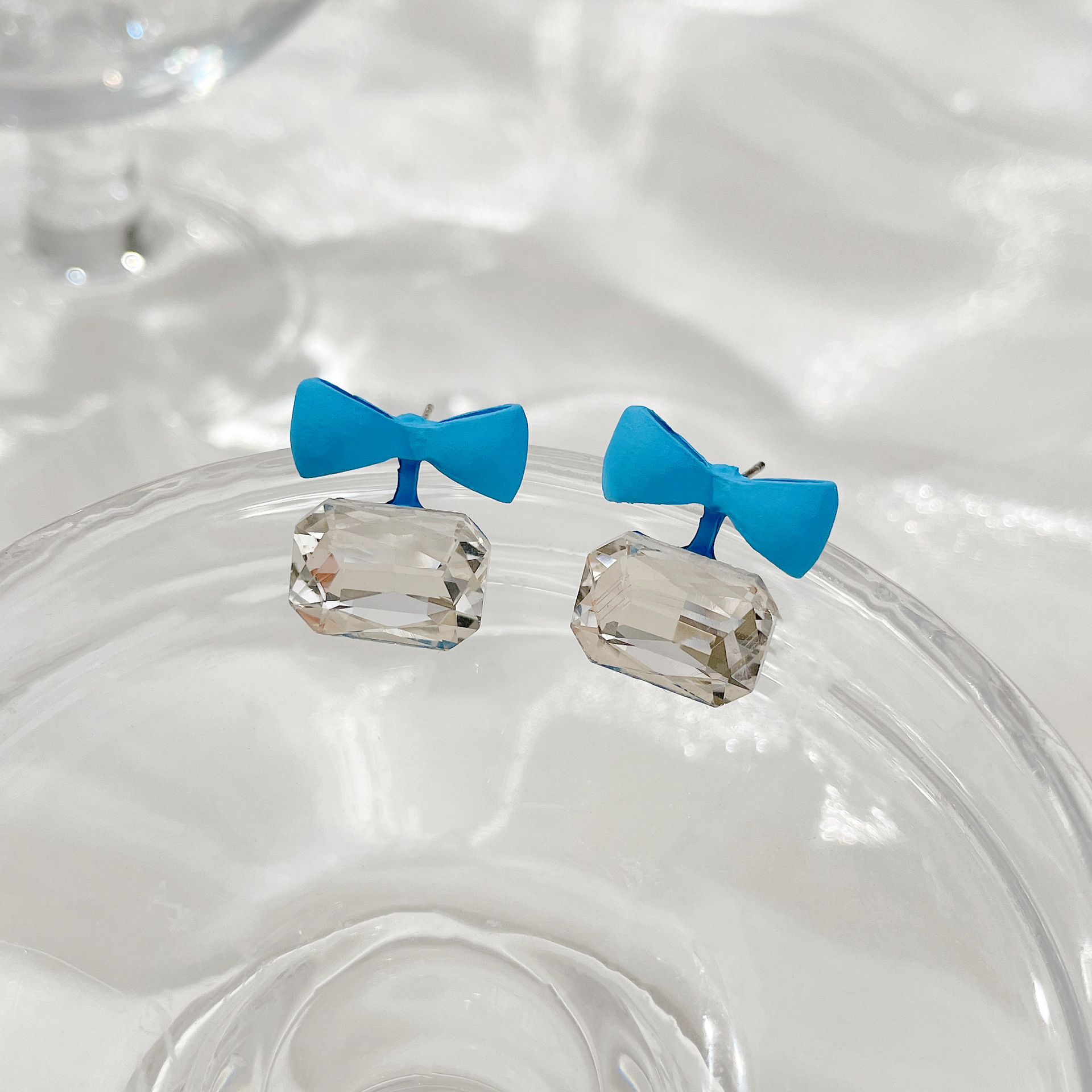 • 185 # 블루 활 크리스탈 귀걸이-실버 바늘