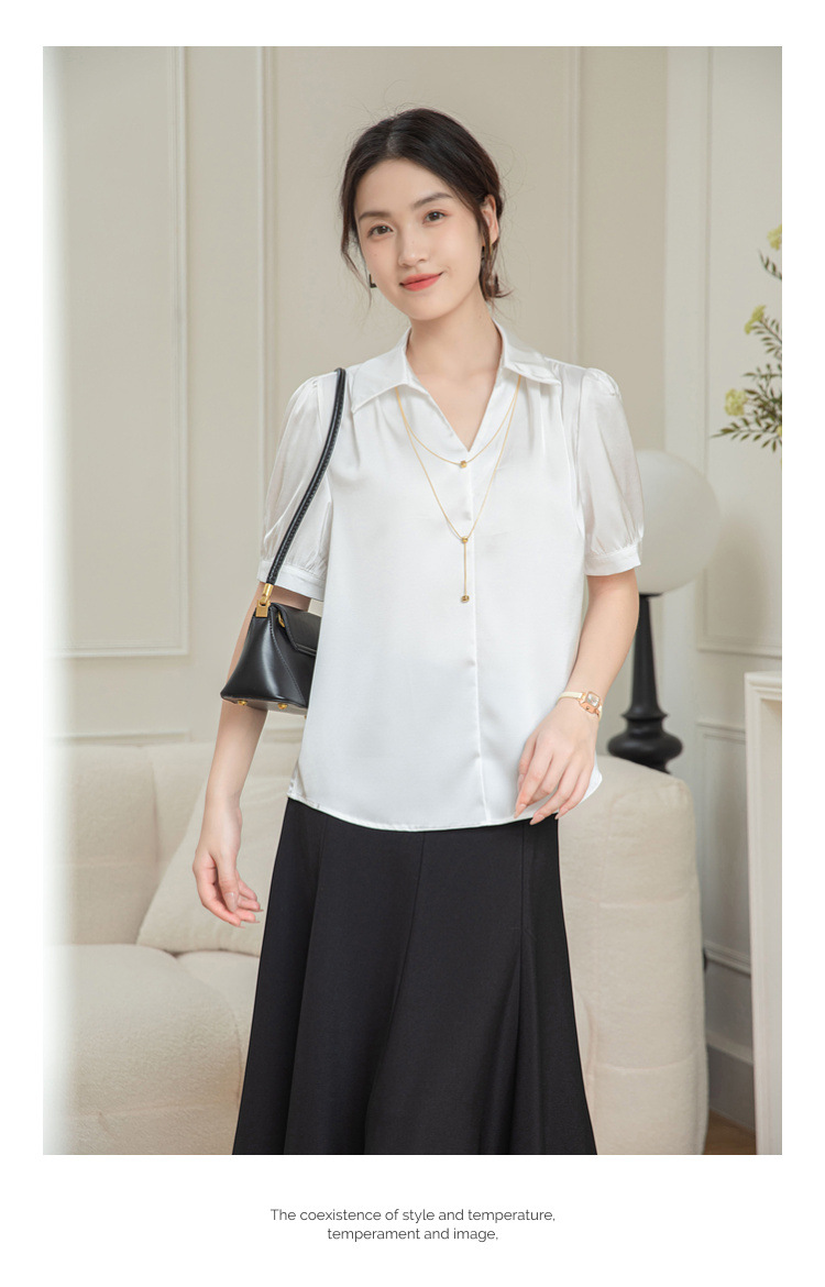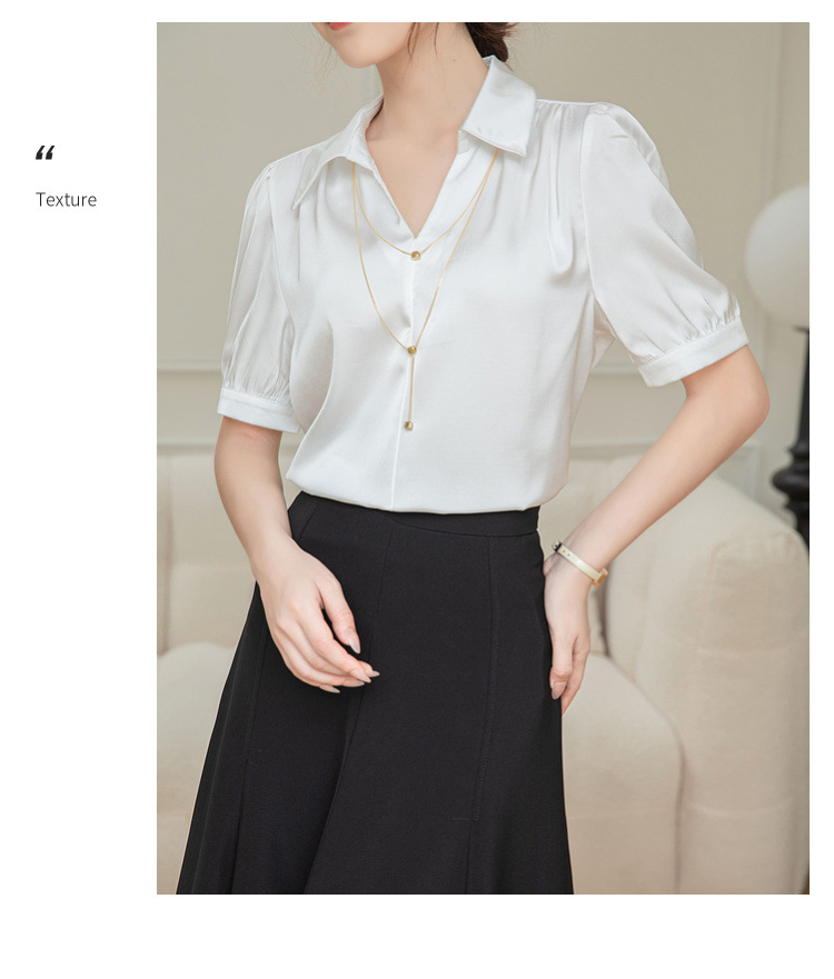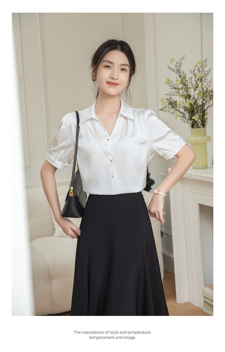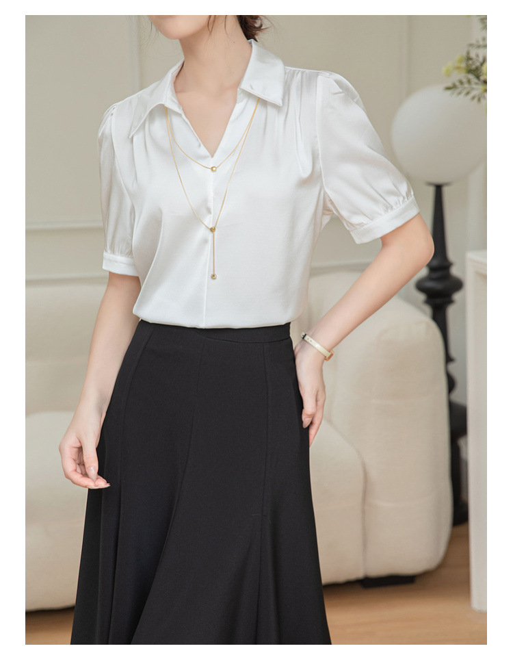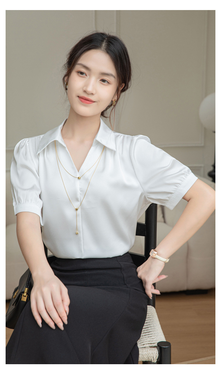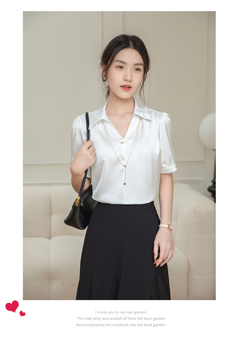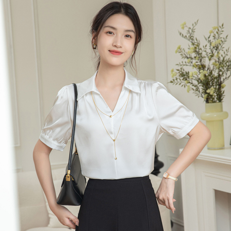 흰색 반팔 셔츠 여성의 여름 새로운 디자인 센스 니쉬 옷깃 기질 작은 통근 전문 셔츠 도매스토어 가기